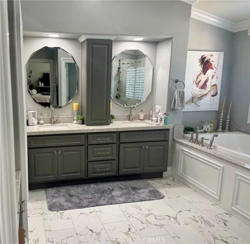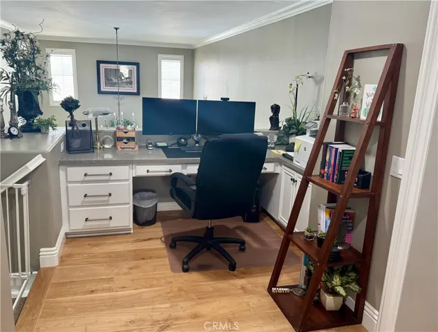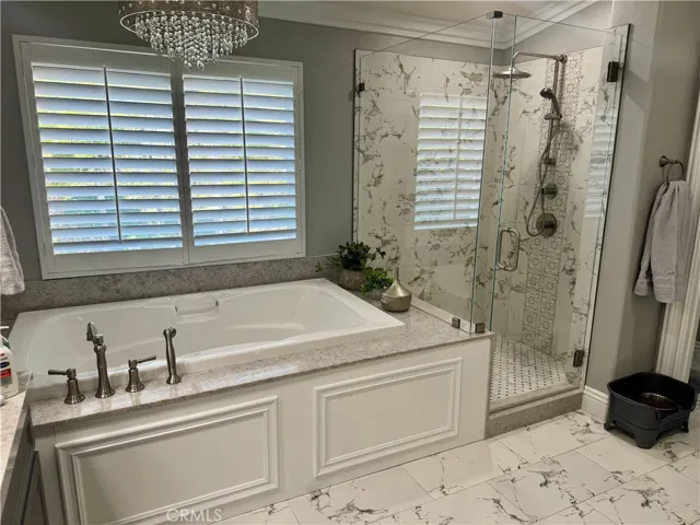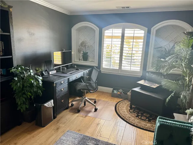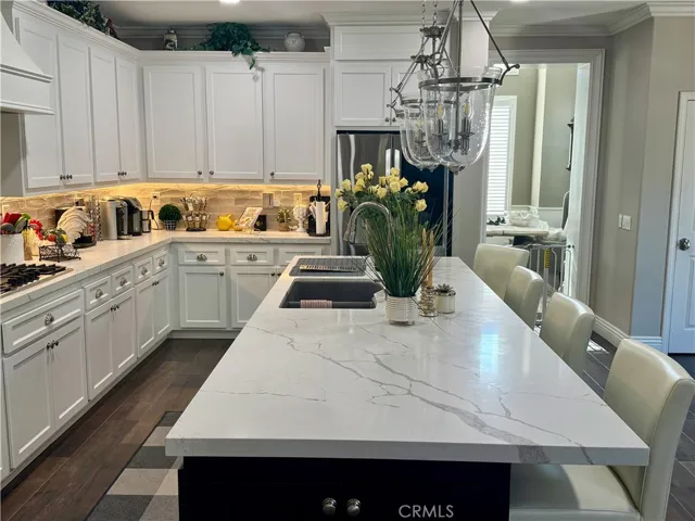 This gorgeous home in Stevenson Ranch is one of a kind! The move-in ready 4 bedroom, 3 bath home includes an office, an open loft, and a formal dining room. It has been recently remodeled with many upgrades including crown molding, custom jambs and base, custom cabinets with roll out shelves and new hardware throughout, custom entertainment cabinets and library shelves in the living room, quartz counter tops and stainless appliances in the kitchen as well as can lights. Custom shutters, bamboo or hardwood flooring and tile flooring are in every room in the home. The laundry room is located on the 2nd floor which includes a utility sink and more custom cabinets. The primary bedroom is large with a spacious bathroom featuring an oversized soaker tub, large shower, large walk in closet with built-in closet organizers. The amazing backyard is ready for you to entertain, with an exquisite pool, jacuzzi with separate heating solar heating system, back yard fireplace, outdoor kitchen that includes sink, BBQ, fridge, kegerator and bar that can sit 6 or more people. You must see this home in person to appreciate all it has to offer!
