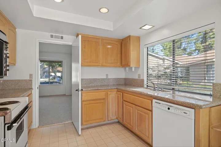 Stunning home (La Jolla model), nestled in the heart of Camarillo’s premier senior community of Leisure Village. This beautiful end-unit offers an inviting open floor plan with a bright and spacious living area framed by large, updated windows showcasing serene golf course and hillside views. Fresh interior paint and new flooring throughout create a warm and welcoming atmosphere.The light-filled kitchen features updated cabinets, modern countertops, and ample storage, making it a joy for cooking and entertaining. The primary suite boasts an updated ensuite bath, while the second bedroom is perfect for guests or a cozy retreat.Step outside to a spacious patio perfect for alfresco dining and enjoying the stunning views. As a member of Leisure Village, you’ll have access to a vibrant, active lifestyle with amenities including a fitness center, swimming pool, woodworking shop, and a recreation center with billiards and social events. Golf enthusiasts will delight in the par-3 course, and the gated community ensures peace of mind with 24-hour security. Welcome to your new home and lifestyle!