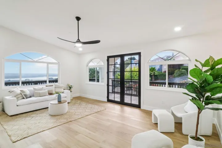 Welcome to your new home perched on Dictionary Hill with unobstructed views of the Sweetwater Reservoir and the valley below. Inside is over 3,500 sqft of fully remodeled interior space. This two-story home offers the option to live as a single-family home with 6 bedrooms and 4.5 bathrooms, or as two separate homes (ADU) with 4 bedrooms and 2.5 bathrooms upstairs, 2 bedrooms and 2 bathrooms downstairs. Each floor has its own fully outfitted kitchen, great for multi-generational living or the perfect party pad! Separate laundry rooms on each floor make laundry time a breeze! All of the bedrooms and bathrooms are oversized. Large, wide hallways and vaulted ceilings really make this home feel truly custom and grand! An extra-large primary suite offers multiple closets (one walk-in) and a true primary bathroom with dual sinks and an oversized shower. The multiple decks and balconies wrap around the home, showcasing stunning views and offering a space to entertain family and friends. The backyard also offers endless entertaining opportunities with a large artificial grass area. If you intend to use the property as two separate homes, you’ll have the benefit of separate submeters, separate HVAC units, and fully separate entrances for ultimate privacy. An attached two-car garage and separate workshop offer a lot of options as well. Bonus of paid off solar!