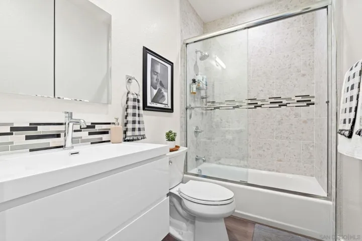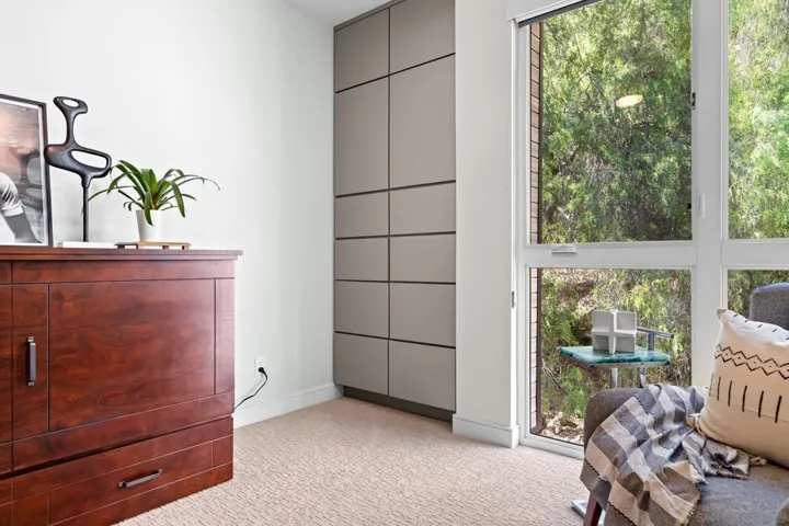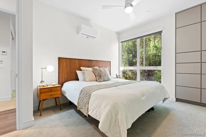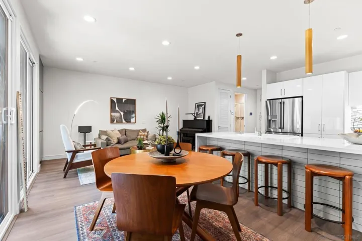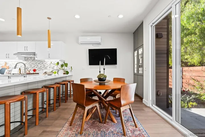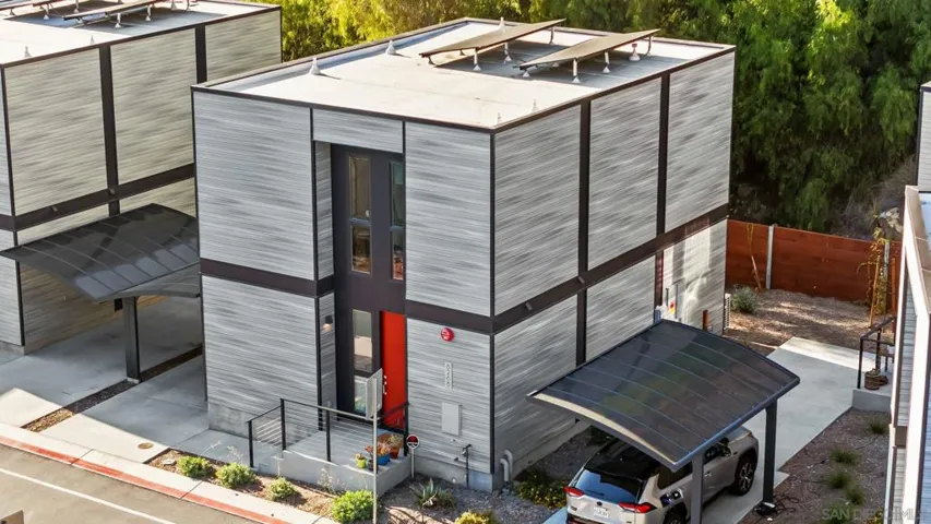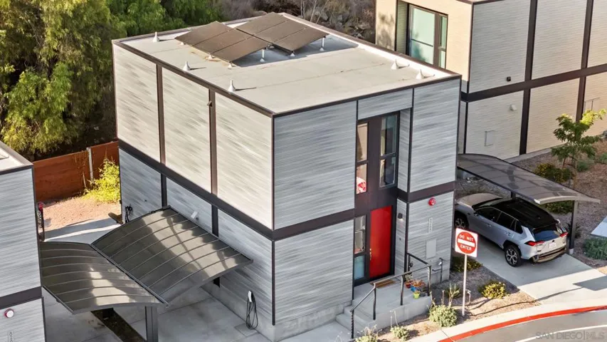 Cantera is one of La Mesa’s coolest hillside enclaves with one way in and out for privacy and just minutes from downtown! Built in 2024 this La Mesa premier detached upgraded home features soaring ceilings, LED lighting, and panoramic dual-pane windows in an open-concept layout. The gourmet kitchen boasts GE Café appliances, quartz countertops, custom cabinetry, and premium fixtures. This open floor plan is perfect for every day living and for entertaining. Owners have added custom built-ins, smart home tech, and designer finishes for a truly refined space. Eco-friendly amenities include fully-owned solar panels, a Tesla EV charger, tankless water heater, upgraded Samsung single unit washer/dryer and energy-efficient HVAC. Enjoy private outdoor living with a covered carport, scenic patio, and custom landscaping in a low-density, HOA-maintained community. Walk to La Mesa Village, Collier Park, and Spring Street Trolley—plus quick freeway access. Upstairs, you’ll find spacious bedrooms with upgraded storage and a modern bath featuring luxury tile and sleek fixtures. Discover Cantera—upgraded luxury, green living, and hillside charm, move-in ready!