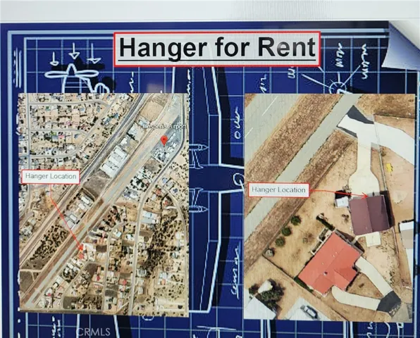 Hesperia airport hangar for lease at $1300 per month. The hangar is 60′ x 60′ with direct access to the airport runway. The backside of the hangar has a small roll up (large enough for vehicles) and pedestrian door accessed from the south street. There is an office and a 3/4 bath within the hangar. Use the storage for your airplane, car collection, or small height RV. The opening of the airplane hangar door entry is approximately 12 feet high and 50 feet wide. The renter may use the restroom but they need to keep it clean. No smoking or alcohol on premises. Renter needs to carry their own insurance on their items.