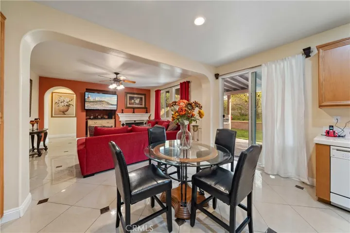 As you enter, you’re welcomed by a bright formal living and dining area with vaulted ceilings that create an open and inviting atmosphere—perfect for gatherings and entertaining. The spacious kitchen is a cook’s delight, featuring abundant counter and cabinet space, an eat-in dining nook, and a clear view of the comfortable 2nd living room. Here, you can relax by the fireplace or step through the sliding doors to enjoy the backyard.