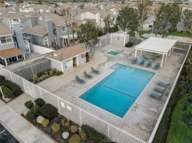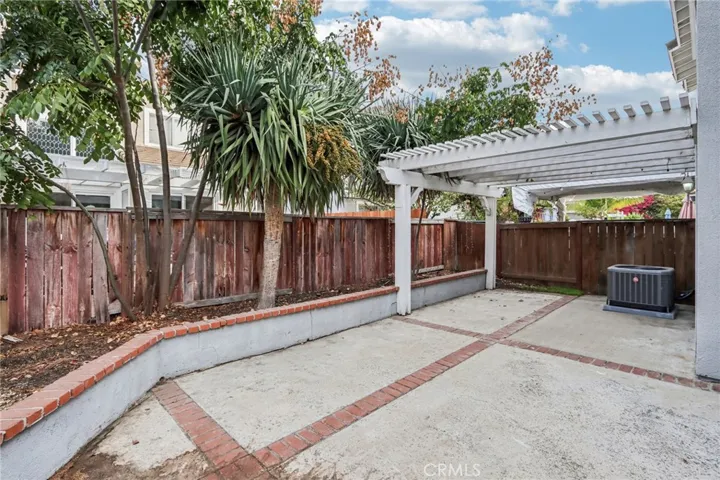 This beautifully maintained townhouse offers a bright and open interior with vaulted ceilings and laminate flooring throughout. The inviting living room features a cozy fireplace and flows seamlessly into the dining area with a slider opening to a spacious private patio—complete with a pergola, mature trees, and plenty of room for dining, lounging, and BBQs. The kitchen includes granite countertops, stainless steel appliances, and convenient access to the laundry room, powder room, and direct entry to the attached two-car garage. Recent upgrades include a new A/C (2025) with 10-year warranty, new heater (2024) with QuietCool system, and a new water heater (2023)—offering comfort and peace of mind for years to come. Upstairs, you’ll find two bedrooms each with its own en suite bathroom, including a primary suite with a walk-in closet. Located in the desirable Hampshire Villas community with low HOA fees, residents enjoy well-manicured grounds, a sparkling pool and spa, BBQ areas, and a basketball court. Conveniently close to markets, schools, shopping, dining, and major freeways—this home combines modern comfort, energy efficiency, and an ideal Southern California lifestyle.