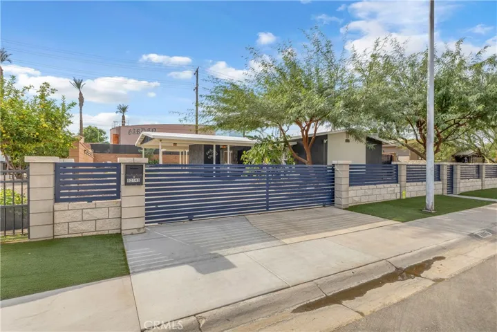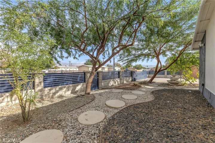 Completely remodeled 3-bedroom, 1-bath home in Indio with major upgrades throughout. This gated property features an extended carport with ample parking, as well as a meticulously manicured front yard with low-maintenance desert landscaping, decorative stone pathways, and a fountain. The backyard is spacious, complete with concrete pads and artificial grass. Enjoy enhanced privacy and security with custom block wall fencing and a driveway gate. Inside, the home offers updated finishes, a large professional WOLF range with double oven, stylish plantation shutters, ceiling fans, and four mini-split A/C units for efficient, customizable cooling. A massive backyard area provides endless potential for outdoor living or future additions. Close to everything the Coachella Valley has to offer, this home delivers exceptional comfort and value in a central Indio location.