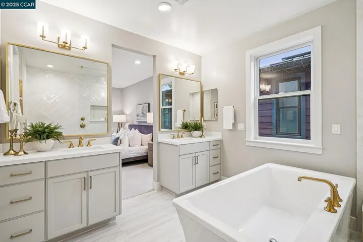 Absolutely beautiful 4 bedroom home in the heart of Walnut Creek. The spectacular Oak model offers an open-concept living space with high ceilings and expansive windows that fill the home with natural light. The beautiful kitchen includes a spacious island with seating, quartz countertops, and premium Bosch appliances—perfect for everyday living and effortless indoor-outdoor lifestyle Walnut Creek is known for. Upstairs, the serene primary suite features a huge walk-in closet and spa-like bath with soaking tub and walk-in shower. Three additional bedrooms are also located on the upper level, including one with its own ensuite bath, along with a conveniently situated laundry room. Outside, the professionally landscaped backyard provides a peaceful setting ideal for relaxing, entertaining, or play. Set within The Enclave, this intimate collection of homes offers exceptional convenience in a highly desirable location in Walnut Creek. Residents enjoy being moments from vibrant downtown, including Broadway Plaza, local restaurants, shops, cafés, parks, and Iron Horse Trail. With easy access to Highway 24/680 and Walnut Creek BART, commuting and weekend adventures are a breeze. Nestled in an established neighborhood close to everything.