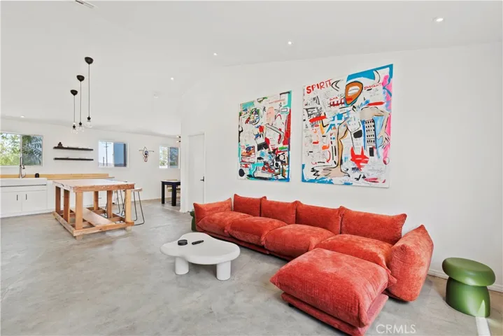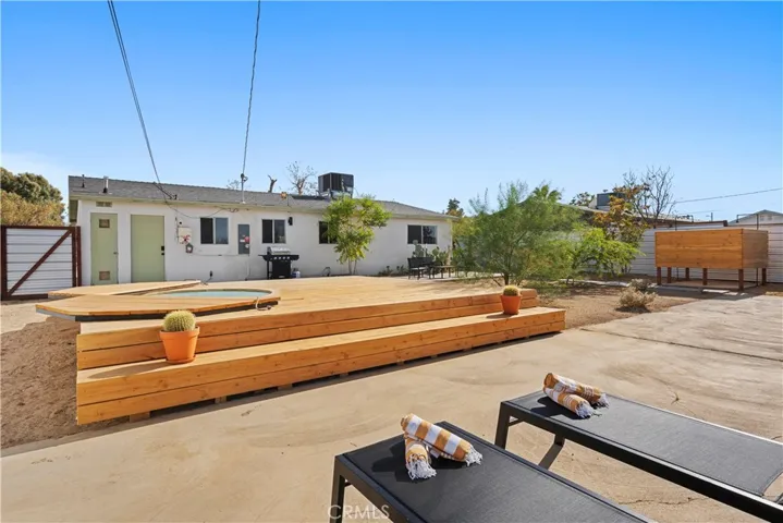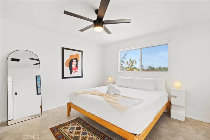 Step into this fully furnished 2 bedroom, 1 bathroom artistic retreat where modern design meets creative flair. With vaulted ceilings and an open concept floorplan, this home flows effortlessly from the sleek kitchen to the airy living and dining areas, creating a spacious and welcoming environment perfect for relaxing or entertaining. Thoughtfully curated furnishings and bold, contemporary decor and unique personality with the interior decor, accompanied by a lot of natural light and concrete floors. Out back, the real magic happens! Designed for entertaining and unwinding, the expansive backyard features two private outdoor showers, a stylish cowboy tub for cooling off, and multiple chaise loungers for soaking up the sun. Whether hosting friends for a day in the sun or BBQ, or enjoying a quiet evening under the stars, this vibrant outdoor haven is the perfect extension of the home’s creative soul, and is ideal for those who appreciate style, comfort, and a touch of the unexpected.