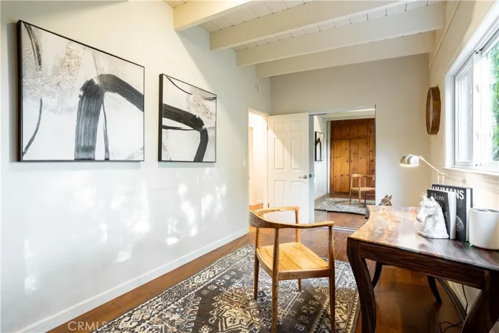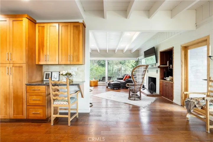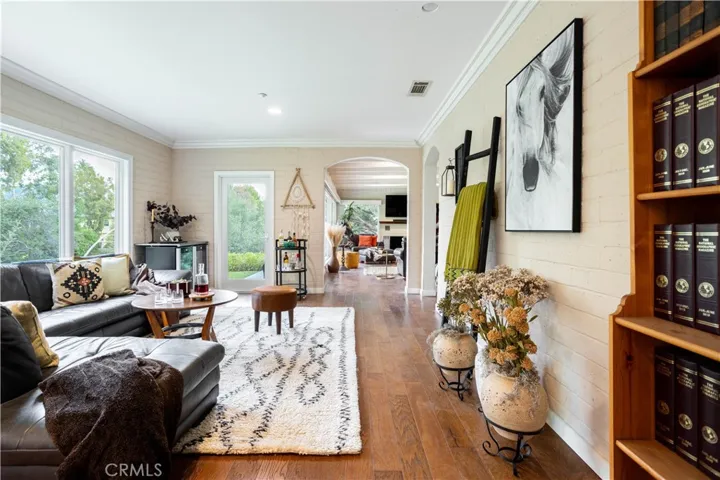 Calling all nature enthusiasts! This exceptional single-level home, set on a sprawling 34,609 sq. ft. lot in highly desirable North Monrovia, offers a rare combination of privacy, space, and modern efficiency. Sited behind a private fence and beautifully shaded by a mature oak tree, the property feels like a secluded retreat. The thoughtful, open floor plan is designed for both comfortable daily living and entertaining. Inside, you’ll find a formal living room and a spacious Great Room featuring a cozy fireplace, designated dining area, and walls of windows that perfectly frame the views of the lush, expansive grounds. The kitchen is appointed with ample Shaker-style cabinetry, granite countertops, and built-in appliances. The primary retreat is thoughtfully tucked away for maximum privacy, boasting a walk-in closet and an adjoining bathroom with a dual-sink vanity. Two additional bedrooms and a secondary bathroom, also featuring a dual-sink vanity and a separate tub and shower. The outdoor space is a true highlight, offering several patio areas ideal for entertaining – a blank slate perfect for installing a pool or realizing a variety of other outdoor visions as well as a large, flat pad accessible by a winding path. Additional amenities include wood flooring, central air and heat, a dedicated utility room, and recent interior and exterior painting. The home is an all-electric residence powered by an owned solar system, offering significant energy efficiency. Parking is plentiful with a detached 2-car garage featuring upper storage, plus several uncovered spaces. Experience the best of North Monrovia living in this unique, private setting.