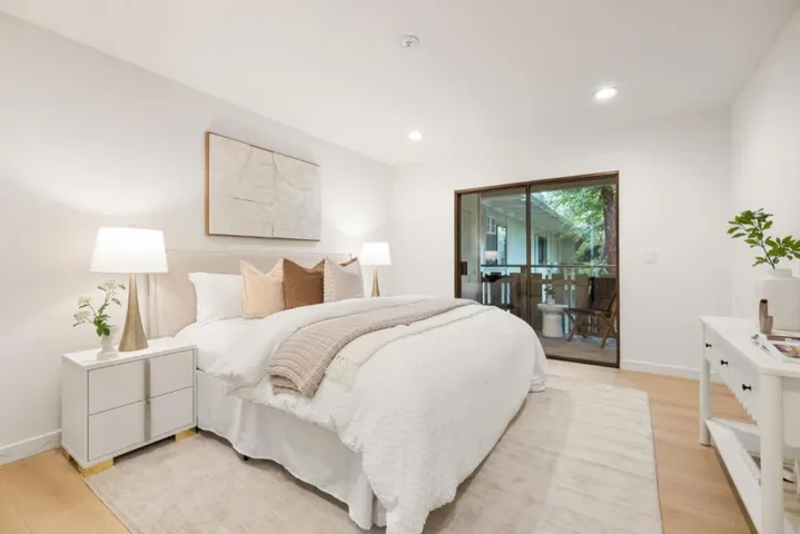 Tucked within the beautifully maintained Mercedes Court complex, this bright 2BD/2BA condo (Unit 24) features fresh paint, newly updated baths, & inviting indoor-outdoor flow to decked living. The open living area centers around a cozy fireplace & extends to a private balcony, perfect for relaxing or entertaining. A well-equipped kitchen connects seamlessly to a sunlit dining area. The spacious primary suite includes a private balcony, walk-in closet, & updated ensuite bath, while a generous guest room & updated hall bath complete the layout. Additional highlights include in-unit laundry closet, ample storage, & access to the sparkling community pool. Enjoy a prime location close to Downtown Los Altos, where boutique shops, cafés, & acclaimed restaurants like ASA, The Post, & Red Berry Coffee Bar create a vibrant dining scene. Nearby parks including Shoup Park, Lincoln Park, & Redwood Grove Nature Preserve offer peaceful outdoor escapes just minutes away. Convenient to San Antonio Center, top-rated Los Altos schools, & HWY 82 for easy Peninsula access. Right next to the complex on Mercedes, a convenient trailhead offers easy access to walking & biking paths, providing a quick escape into nature for morning exercise, evening strolls, or weekend adventures