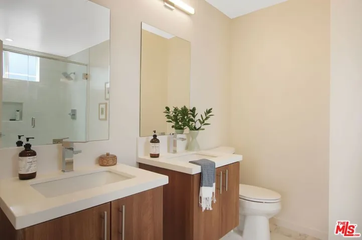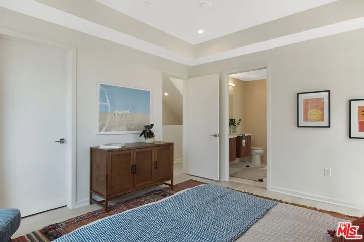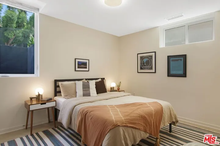 Modern Silver Lake single-family home with a roof deck & private back yard! Enter into the foyer or from the two-car garage with direct access. 1st floor offers a bedroom with en suite bath. Head up to the dramatic living room with oak floors, open to the dining room & kitchen. The gourmet kitchen has quartz counters & stainless Bosch appliances. A full wall accordion door opens off of the dining area to enjoy true indoor/outdoor living. The 3rd floor offers a primary bedroom suite with a huge walk-in closet & en-suite bath with double sinks & an oversized shower. There is another bedroom on the 3rd floor with an en-suite bath. The spectacular rooftop deck with unobstructed views westward – perfect for a glass of wine at sunset! Central A/C with a thermostat on each floor as well as a stackable laundry next to the primary. Access to transportation & downtown LA. Stone’s throw to Casita del Campo, Hyperion Public Bar, Lyric Theater, Hype Yoga Studio & Gelsons. Top-rated Franklin Elementary and Thomas King Middle!