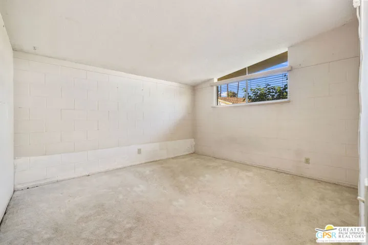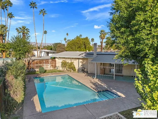 THE ONE you’ve been waiting for in Palm Desert, where mid-century architecture, clean lines, and an ultra-private pool setting come together on a corner lot with south-facing mountain views. Motor up the drive for a closer look at this three-bedroom, two-bath opportunity where value and location shine. Bring your special touch and enjoy the modernist vibes of block walls, clerestory light, and the optimism of that iconic architectural era. The living and dining areas center around a handsome brick fireplace with hearth and a glass slider that opens to the pergola-covered patio, while the nearby kitchen enjoys great flow and easy outdoor access. Bedrooms enjoy thoughtful separation, and the ensuite primary features a vaulted ceiling, clerestory window, and two closets, while guest bedrooms two and three share a full bath. Carport parking for two plus a nearby storage area adds convenience, and leased solar is another plus. Recent improvements include a newer roof, newer water heater, and a freshly replastered pool. Generous outdoor spaces offer plenty of opportunity to elevate the landscaping and create something truly special, all in a prime Palm Desert setting just minutes from the best of El Paseo.