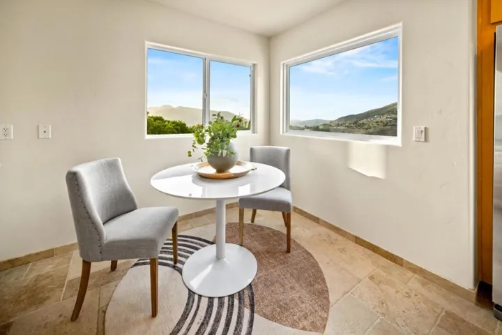 Perched above Carmel Valley Village, this stunning contemporary home captures the essence of California living with sweeping Santa Lucia mountain views and year-round sunshine. Featuring 3 bedrooms and 2.5 baths including two elegant primary suitesthis freshly painted residence showcases marble floors, high ceilings, and walls of glass that flood the interiors with natural light. The chefs kitchen is an entertainers dream with double ovens, warming drawers, wine fridges, and an ice maker, opening to a dining room and living area anchored by a grand river rock fireplace. Outdoor spaces include a stone fireplace, patio with hot tub, koi pond, and walking bridge surrounded by drought-tolerant landscaping. The detached guest casita offers its own kitchen, bath, and private parking. Gated entry, paver driveway, security system, and two-car garage complete this exceptional Carmel Valley retreat.