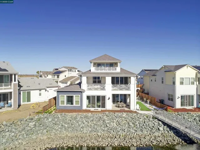 Live the luxury lifestyle you always wanted. Stunning and contemporary Delta Coves Waterfront property that checks all the boxes including your private boat ramp and launch. The expensive home boasts of designer touches throughout including an exquisite exterior design. Highlights include modern engineered hardwood flooring, Gourmet Kitchen with quartz countertops including a breakfast bar, designer bathrooms, recessed lighting and much more. This property has a Media Room and extra living space on the upper floor with more breathtaking views. Equipped with a tankless water heater and EV charger to add to the smart home concept. Enjoy comfort year-round with Owned Solar! The backyard is magical. On the water with your boat nearby ready for fun. The centerpiece of community fun is found in the nearby Island Camp. Island Camp is spectacular with a club house, pool, yoga and exercise facilities, sports pavilion with tennis courts, pickleball and beach volleyball. The swim complex offers adult and children pools and a spa to recharge. Nearby cabanas await. Let’s not forget the Duffy Bar, the Camp’s treasure where you can soak up the Delta views and enjoy a cocktail. The Fourth of July will be a treat with a celebration and events you will not want to miss. Your home is a vacation!