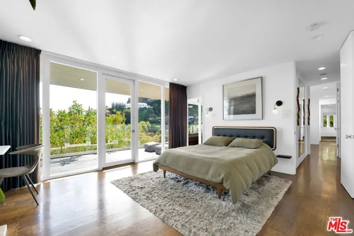 Virtual tour upon request! Perched atop the prestigious Hollywood Hills, 8450 Carlton Way is a rare and radiant example of mid-century modern design reimagined for the contemporary lifestyle. From the moment you arrive, you’re enveloped by sophistication, serenity, and panoramic splendor as floor-to-ceiling glass walls frame sweeping, unobstructed vistas that stretch from the glittering skyline of Downtown Los Angeles to the tranquil blue horizon of the Pacific Ocean.Step inside to discover refined interiors bathed in natural light, accentuated by rich hardwood floors and seamless indoor-outdoor flow. The spacious open-concept living area invites both grand entertaining and intimate evenings, while custom electric blinds offer effortless ambiance control with the touch of a button.The sleek, skylit powder room glows with natural light, and a dedicated office provides the perfect creative escape. A luxurious steam shower elevates daily rituals, and included blueprints for a master suite present the opportunity to expand and personalize the home to perfection.Outside, an expansive wraparound deck creates a private retreat in the sky, ideal for sunset cocktails, alfresco dining, or morning meditation against a cinematic backdrop. Recent enhancements include a frameless glass balcony, newly stained flooring, modern pedestrian gate, and designer exterior lighting. Lush, drought-tolerant landscaping with a drip irrigation system adds a fresh yet sustainable flourish.The property also features a two-car garage with a brand-new motor, Tesla charging station, and is secured with the latest perimeter surveillance system. A full Savant smart home system integrates sound, lighting, and climate with intuitive ease, bringing intelligent luxury to everyday living.Whether you’re entertaining under the stars or quietly taking in the view from your deck, 8450 Carlton Way is a timeless jewel in one of Los Angeles’ most sought-after enclaves, a home that embodies modern glamour, architectural pedigree, and boundless possibility.