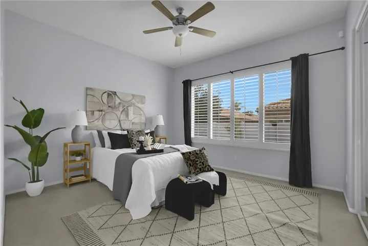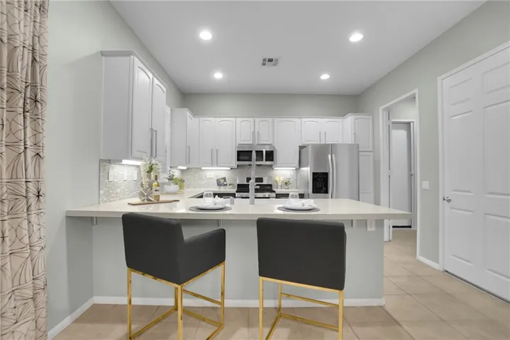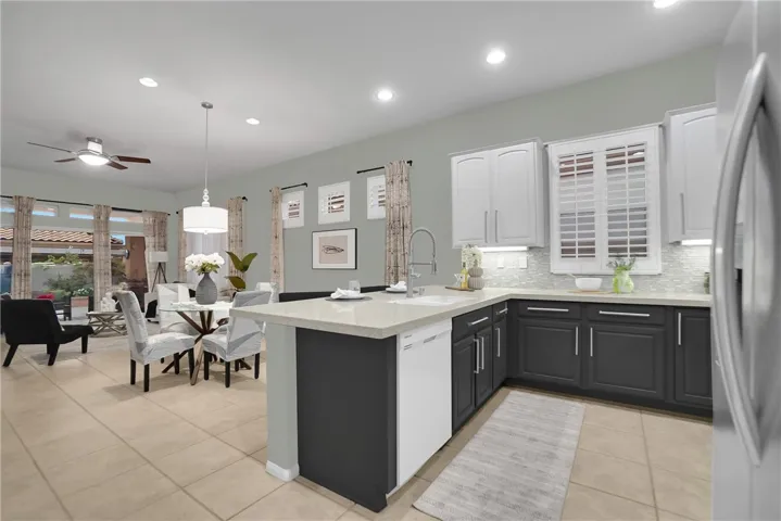 REDUCED appx. $34,000..PULTE HOME – PAVE MODEL – PAID OFF SOLAR. TURN KEY & READY TO MOVE IN CONDITION. ONE-STORY 2 BR + 2 BA + Office/Den – 1,471 Sq Ft in Sun Lakes Country Club – amazing resort style amenities. This home is located on a great interior tract location and is elegant and beautifully upgraded. The open-concept floorplan allows for easy entertaining and conversations with your guests whether dining or lounging. There are lots of windows and natural light. The “PAVE” model is a highly sought after floorplan with the bedrooms and bathrooms on opposite sides of the house, perfect when having overnight guests! The den is located in the middle of the two bedrooms and makes a great office or TV room. living room entertainment furniture is included. Kitchen has been remodeled with shaker style cabinets, custom backsplash and quartz countertops. The laundry room is large and has a separate sink – conveniently located off kitchen. Kitchen opens into the spacious dining room and great room with entertainment center and view of the backyard. Master bath has large walk-in shower and clear shower doors. Guest bath has been remodeled with a “Walk-in Tub” a wonderful upgrade for safety and comfort. The backyard is low maintenance with vinyl fencing, grassy area, planters, and covered patio. All of the landscaping is with drought resistant plants and hardscape. Price INCUDES washer, dryer & refrigerator. Sun Lakes offers a premier Southern California location, with gorgeous views! The over 55+ community includes two 18-hole golf courses spread across 1,000 gently rolling acres. The resort setting also features three different clubhouses, fitness centers, two libraries, a grand ballroom, billiards room and a card room. There are tennis courts to enjoy and bocce ball courts as well. Just a short drive east to Palm Springs and lots of shopping. Fruit trees and little gardening area side of the back yard.. CABLE TV & INTERNET included in Dues – Walking distance to South club house. close to the gate 6 enter and exit.