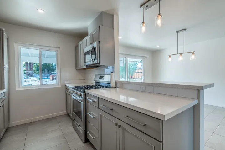 Welcome to this nicely updated ranch-style home, ideally located on a quiet cul-de-sac in the Country Club Villas community of Palm Desert. Featuring 1,232 sq. ft. of living space on a generous 7,841 sq. ft. lot, this home blends modern upgrades with desert charm — the perfect choice for a first-time buyer or anyone seeking a home in the Desert. Step inside to discover new tile flooring throughout and abundant natural light streaming through newly installed windows. The remodeled kitchen includes quartz countertops, tile backsplash, stainless steel appliances, and upgraded cabinetry — designed for both everyday living and entertaining. Beyond the cosmetic enhancements, this home also offers peace of mind with a new roof, updated electrical, and complete plumbing replacement with new piping throughout.A newly added two-car garage provides convenience and extra storage space. The spacious front and back yards, complete with a covered patio, offer a blank canvas for you to create your own outdoor living space. Enjoy stunning mountain views and take advantage of the nearby community pool, just a short stroll away. Move-in ready and nicely upgraded, this Palm Desert home offers quality, comfort, and an exceptional location — all in one inviting package.