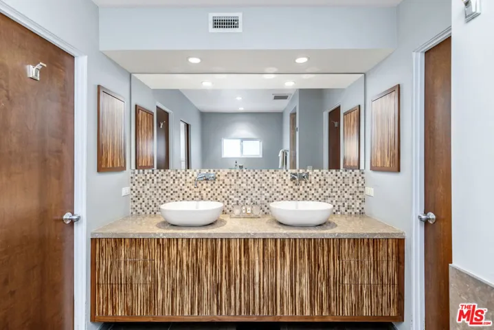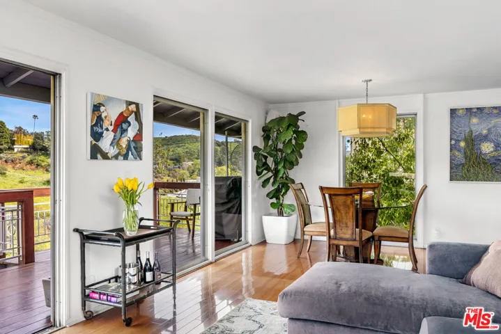Privacy, views and great architecture; it’s all here at this light-filled Mid Century in Beachwood Canyon. The entrance level offers an open floor plan with living and dining spaces opening to a great entertaining deck, and expansive views of the Hollywood Sign, Griffith Park, the Griffith Observatory and endless wildlife. The spacious kitchen includes an island with seating, granite counters, stainless steel appliances and abundant cabinetry. A fireplace in the living room gives you all the more opportunity to gaze out at the vistas. This floor also includes powder room and laundry closet. Downstairs are two bedrooms, including a spacious primary suite that has the same dramatic views and its own deck. The primary also has a spacious walk-in closet and well appointed bathroom including dual vanities, stone counters, custom cabinets, freestanding tub and luxurious dual-headed shower. The secondary bedroom is also spacious with its own walk in closet. Amazing location on a quiet cul-de-sac, with great access to the Beachwood Cafe, Beachwood Market, the Franklin Village and the entirety of Griffith Park. Property has dual zone HVAC, electric car charging and abundant storage. Can also be rented partially furnished. Easiest route is Beachwood to Westshire.