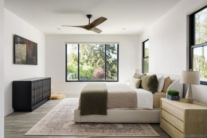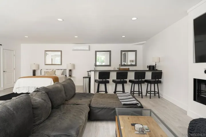 Welcome to 15102 Sun Valley Lane — a private resort-style sanctuary tucked within one of North County’s most desirable neighborhoods. Set behind gates on 1.4+ acres, this thoughtfully curated estate offers the perfect blend of peace, privacy, and convenience—just minutes from beaches, dining, shopping, top-rated schools, and everyday essentials. A long, private driveway winds through manicured grounds, mature landscaping, and inviting pathways that set the tone for the experience ahead. Inside, the 3,042 sq ft main residence is airy, bright, and timeless, with a warm neutral palette, crisp white walls, and retractable doors that extend the living spaces seamlessly outdoors. The chef’s kitchen is a striking focal point, featuring white and black stone countertops, custom cabinetry, premium appliances, and generous island seating. The great room is designed for effortless living and entertaining, offering multiple gathering spaces — a family lounge, dining area, and a chic wet bar with wine fridge, additional dishwasher and bar seating — all opening to the resort-inspired backyard with new La Cantina pass-through window and indoor/outdoor bar seating. Step outside and experience true California living. The 8-ft deep pool and spa overlook expansive green grounds, framed by sleek glass paneling and abundant lounge areas. Host unforgettable gatherings beneath the poolside cabana with outdoor fireplace, and enjoy the estate’s impressive amenities, including a full sports court ideal for pickleball, basketball, or tennis, a Step outside and experience true California living. The 8-ft deep pool and spa overlook expansive green grounds, framed by sleek glass paneling and abundant lounge areas. Host unforgettable gatherings beneath the poolside cabana with outdoor fireplace, and enjoy the estate’s impressive amenities, including a full sports court ideal for pickleball, basketball, or tennis, a putting green, and wide-open lawns designed for play, events, and relaxation. The main residence offers two ensuite guest bedrooms with direct outdoor access. The primary suite is a private hideaway complete with a cozy sitting area, electric fireplace, walk-in closet with center island, and a spa-inspired bath with dual vanities, soaking tub, glass-enclosed steam shower, and an outdoor shower surrounded by nature. A bonus room with skylight currently functions as a home office, offering flexibility for work or retreat. Additional conveniences include a dedicated laundry room, full guest bath, and abundant storage throughout. A separate approx. 782 sq ft guest house provides ideal accommodations for extended-stay guests, multigenerational living, or a live-in nanny, complete with a full kitchen, bar seating, dining area, living room, full bath, and walk-in closet. Located minutes from Del Mar and Solana Beach beaches, the Del Mar Racetrack, Rancho Santa Fe, and premier coastal amenities, this exceptional property embodies effortless luxury, privacy, and the best of Southern California living. Welcome home.
