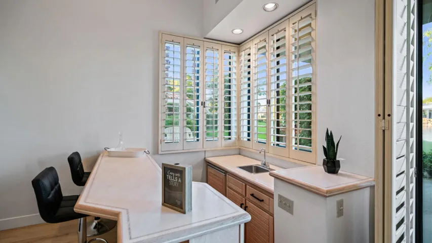 Unbeatable location situated on a prime lot within PGA West. Enjoy breathtaking views of the lake, majestic mountains, and the renowned Stadium Golf Course from your own backyard. With nearly 3,000 square feet of elegantly appointed living space, the highly sought after legend 30 floor plan is flawlessly designed with 3 spacious bedrooms and 3.5 baths. From the moment you step inside, the home exudes an ideal blend of comfort and sophistication. The spacious and open floor plan features a flowing layout perfect for entertaining guests or enjoying daily living, all bathed in natural light. The gourmet center island kitchen is equipped with beautiful granite countertops, ample cabinetry, and a generous center island ideal for food preparation and casual dining. The stunning great room is complemented by a chic sunken wet bar, perfect for gatherings. Freshly painted throughout, the interior comes complete with classic plantation shutters on all windows, elegant granite countertops, and a large covered patio for outdoor relaxation. The sparkling community pool is just steps away, and with a recently replaced AC unit, you’ll be comfortable year round. An expansive 2 car garage plus a convenient golf cart garage adds to the appeal. Don’t miss out on this exceptional opportunity. Schedule your private tour today!