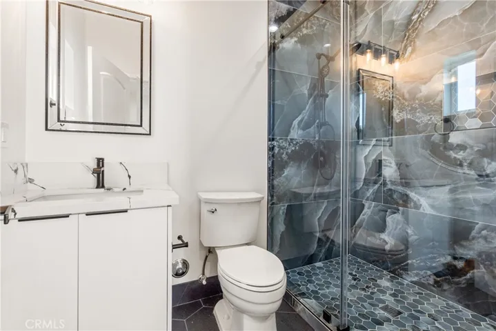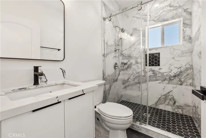 The primary suite is a private retreat complete with a luxurious ensuite bathroom, a Juliet balcony, and a walk-in closet. Each additional bedroom is thoughtfully designed for comfort and versatility. Enjoy the large balcony with sweeping views of the Palos Verdes hills and the city.