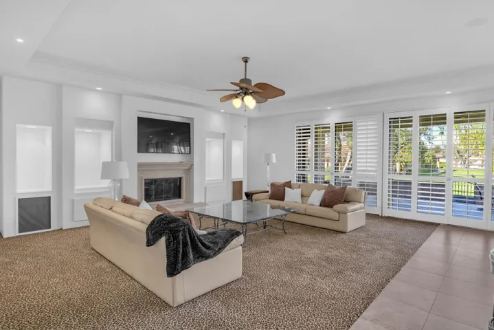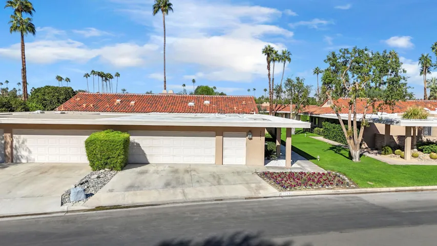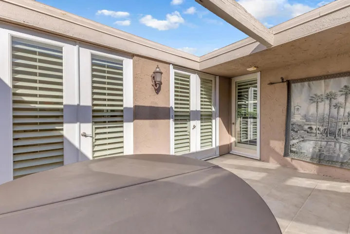 Step into desert elegance and discover a beautiful refreshed Indian Wells retreat set within a WORLD-CLASS country club offering 36 holes of championship golf. This condo has been freshly painted throughout, including the garage- designed for comfort, style and effortless living. Inside soaring ceilings, refined soffit details and recessed lighting highlight a stunning great room that flows seamlessly into the kitchen and breakfast bar, perfect for entertaining or relaxed gatherings. This residence offers two private bedroom suites, including a standout OVERSIZED PRIMARY RETREAT spacious enough for a sitting or lounge area. Great walk-in closets with bathrooms brighten up by skylights. Enjoy true indoor-outdoor living with a private courtyard featuring a hot tub and a back patio framed by a short privacy wall overlooking the flush greenbelt and mountain peekaboos.Situated within a community celebrated for its breathtaking surroundings, this home provides both privacy and tranquility just steps from the community pool. Residents enjoy world class amenities, including championship golf, tennis garden perks, fitness center, fine dining and other exclusive Indian Wells homeowner benefits.