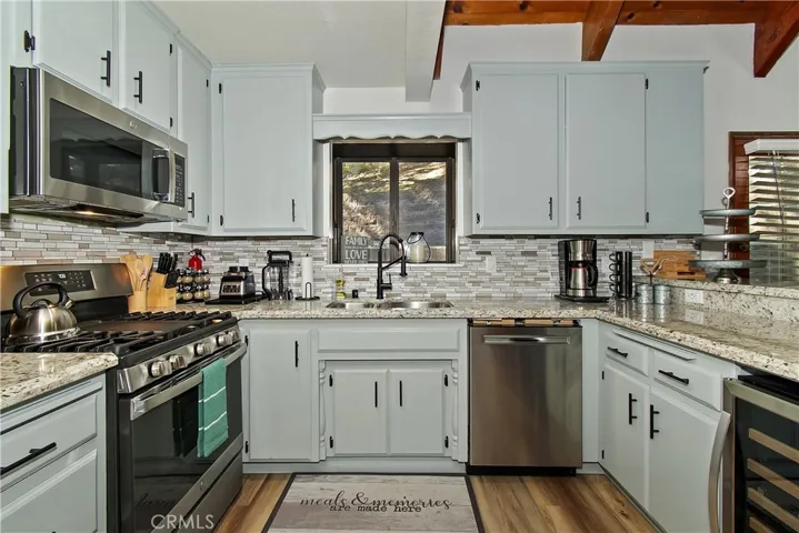 Turnkey furnished beautifully remodeled home with garage in the popular San Moritz area of Crestline. This home is rented as a long term furnished rental with all utilities (water,sewer,natural gas,electric,internet) conveniently included in the monthly rent. Beautiful spacious primary suite upstairs with en suite bathroom and private deck with a gorgeous lakeview. Two bedrooms, full bathroom, kitchen/livingroom/diningroom are all on the main level. Large concrete patio in the back with a great setup for entertaining plus large view deck in the front of the home. Home is on over 1/3 acre of beautifully forested land with plenty of privacy and room to explore. Large garage with direct access into the home. Full laundry room setup with washer/dryer included. Cool private Gazebo in the back yard area. This home has a prime location less than 1/2 mile from lovely Lake Gregory hiking trails, boating, dog parks, entertainment and more. Downtown Crestline Village is also less than a mile away. Great opportunity…reach out today to see this lovely home!