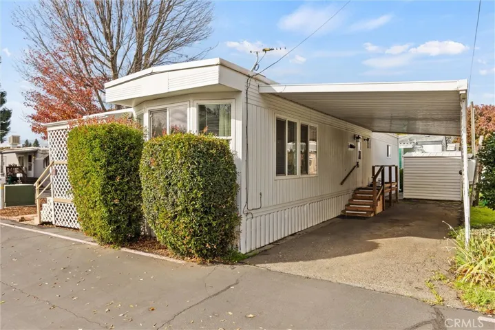 Step into a home that feels instantly welcoming—an easy-living manufactured home tucked inside an affordable, safe and friendly senior park, where neighbors wave and flowers seem to bloom just a little brighter. This cozy home sits on an extra-large corner lot giving you space to breathe, garden, relax, or simply enjoy the peaceful setting. The yard is nicely landscaped, and the home has enjoyed several recent upgrades that make it shine: new sliding glass doors, a modern electric water heater, a wall A/C unit, and a new exhaust hood in the kitchen. Thanks to two expanded sections, the interior offers more room than you’d expect. The primary bedroom is huge, with an inviting sitting area and plenty of closet space for all your essentials. A flexible bonus room has worn many hats: bedroom, office, laundry room—you name it. Whatever you need, this room can handle it. Step outside onto the lovely deck and enjoy sipping your morning coffee, listening to the birds, or watching the sunset settle over your yard with a glass of wine. Add in an attached carport, extra parking, a 7′ x 10′ shed, and—why not—the yard tools included, and you’ve got a place that’s practical, cheerful, and ready for its next owner.