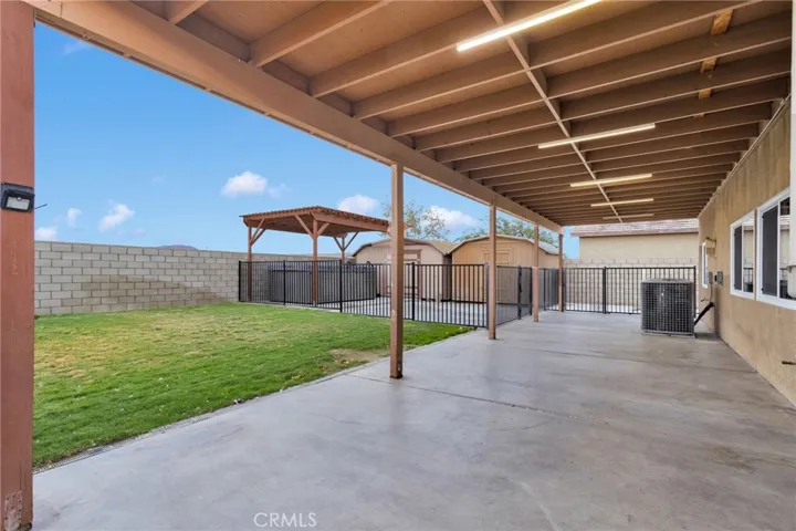 MOVE IN READY! NO HOA! This home is sure to check ALL the boxes! Beautiful open concept home featuring six bedrooms and four bathrooms, including two main floor bedrooms ideal for guests or multigenerational living. The upgraded kitchen showcases abundant storage, quartz countertops, stainless steel appliances, a 36 inch six burner stove with range, in counter microwave, two pantries, pot and pan pull out drawers and soft close cabinets and drawers throughout. Remodeled bathrooms and the primary suite offers a spacious retreat with a large bedroom, an oversized walk in closet, and a beautifully upgraded primary bathroom that includes a very large walk in shower featuring two showerheads, one of which includes a multi function shower panel system. The home features recessed lighting, new luxury vinyl flooring throughout, new energy efficient windows installed throughout the entire house along with solar window shades. Additional upgrades include a tankless water heater and a swamp cooler. The exterior includes a gated swim spa, fully landscaped front and backyard, two large storage sheds, a new block wall surround, space for toys and RV parking with a dump hook up. The property comes with solar and battery backup, with solar agreements to be assumed by the buyer. Conveniently located near the 15 Freeway, shopping, dining, and a community park, this home blends comfort, efficiency, and modern upgrades in a prime location.