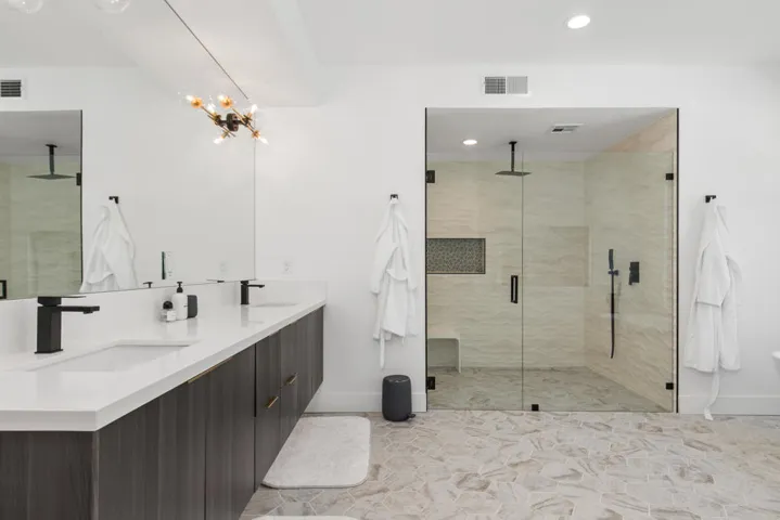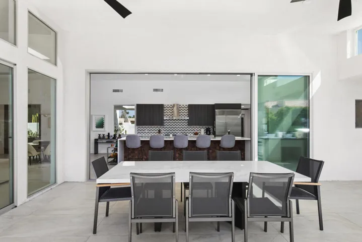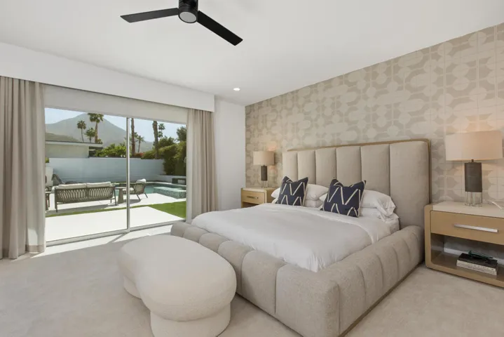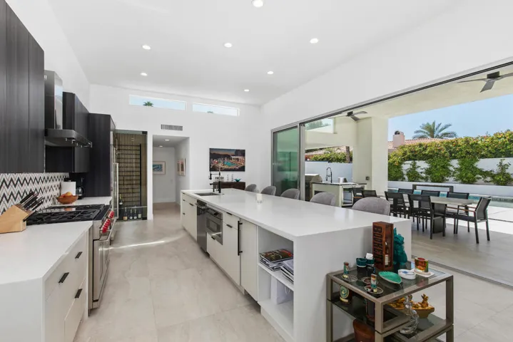 Available NOW! Turnkey- and SEASON 2026 Ready for you- ask for discount prices for the summer and multiple months. 5 bedrooms (currently set up as 4 bed and an office) This remarkable contemporary luxury home, completely renovated, is nestled in one of Indian Wells’ most prestigious neighborhoods and is available for rent. Upon entry, you’re greeted by an impressive all-glass center pivot architectural door, setting the stage for an exceptional desert living experience. Inside, the spacious open floor plan features expansive dining areas, soaring 12-foot ceilings, a captivating ”Fire and Ice” fireplace, and stylish modern appointments throughout.Enjoy seamless indoor/outdoor living with an impressive 18-foot floor-to-ceiling pocket door and beautiful porcelain tile flooring both inside and out. The newly renovated gourmet Chef’s kitchen boasts modern cabinetry, quartz countertops, a Wolf double oven range, Sub Zero refrigerator/freezer, a chic glass-enclosed wine closet, and a separate walk-in pantry.Retreat to the luxurious Master Primary Suite overlooking the pool and stunning mountain views, complete with a spa-like bath and expansive walk-in closet for ultimate comfort and relaxation. Outside, the private outdoor living space offers a resort-like experience for you and your guests, with a covered living/dining area, outdoor kitchen, PebbleTec pool and spa, Cabo style cabanas, a spacious firepit with lounge area, and a putting green. Prices vary on dates and length of stay!