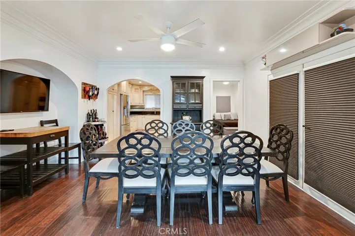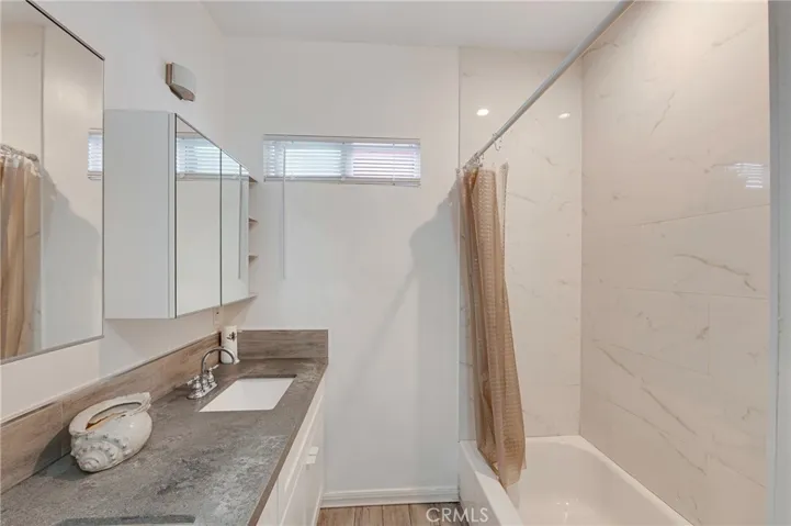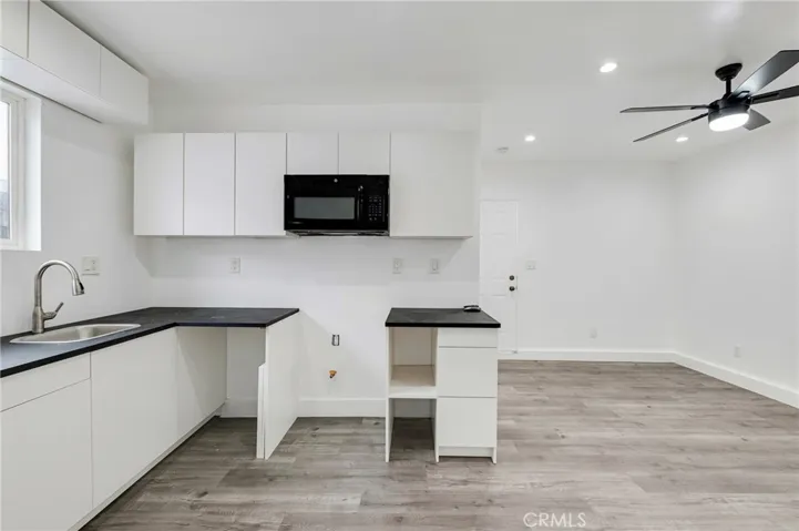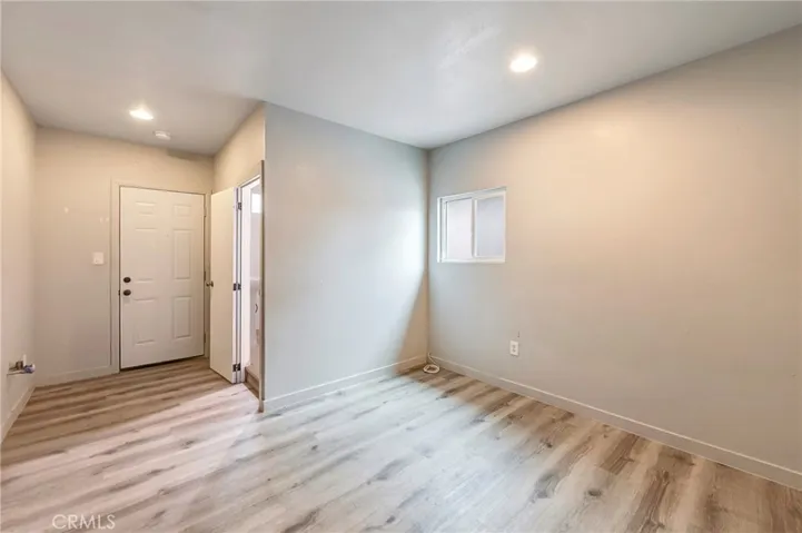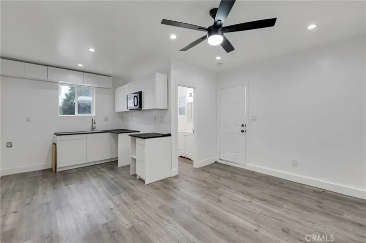 Separate from the main home, the garage has been converted into a remodeled 2-bedroom, 1-bath unit, complete with laminate flooring throughout, recessed lighting, a new kitchen, modern fixtures, an updated bathroom, and fresh paint—perfect for rental income or extended family. An additional updated studio/1-bath unit sits adjacent to the garage, featuring laminate flooring, recessed lighting, a neutral color palette, and a remodeled bathroom.