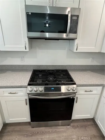 Remodeled 2-bed, 1-bath upstairs unit located above a common breezeway and garages. This single-level living space features an open family room with a breakfast nook adjoining the kitchen, it includes a detached single-car garage with washer and dryer hookups. Highlights include modern kitchen finishes, updated bathroom, and abundant natural light with easy access to shared areas. The unit has high-end finishes such as quartz countertops and stainless appliances. The property Is located in close proximity to transit, shops, and schools.