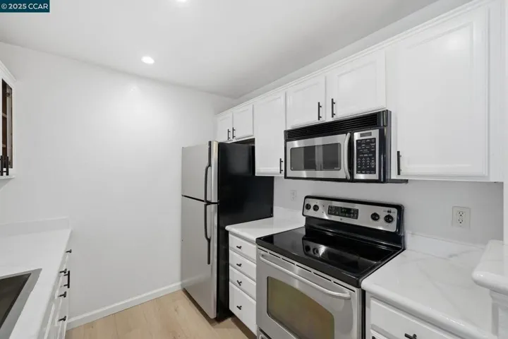 Discover resort-style living at 130 Reflections #28, San Ramon’s peaceful hidden oasis—quiet, private, and surrounded by serene redwood trees. This light-filled top-floor home impresses with vaulted ceilings, designer finishes, fresh paint, recessed lighting, and newer LVP flooring. The updated kitchen shines with modern white cabinetry, chic countertops, and stainless steel appliances. Enjoy an open layout flowing to a spacious patio with tree-line views and extra storage. The generous primary bedroom features a walk-in closet, and the remodeled bath offers modern upgrades. The spacious second bedroom doubles perfectly as an office, den, or flex space, offering versatility for today’s lifestyle. In-unit laundry, newer appliances, and included water and trash add ease to daily living. Set in the gated Reflections community with blue waterways, soothing fountains, and lush landscaping, amenities include a pool, spa, sauna, fitness center, clubhouse, BBQ areas, and walking paths. HOA covers water, sewer, exterior maintenance, and more—plus no rental restrictions for flexible ownership. All just moments from Market Place, City Center, Trader Joe’s, top-rated schools, parks, Iron Horse Trail, and I-680. Don’t miss this great opportunity to own in the heart of San Ramon!