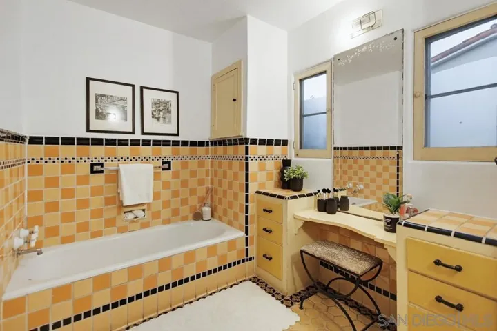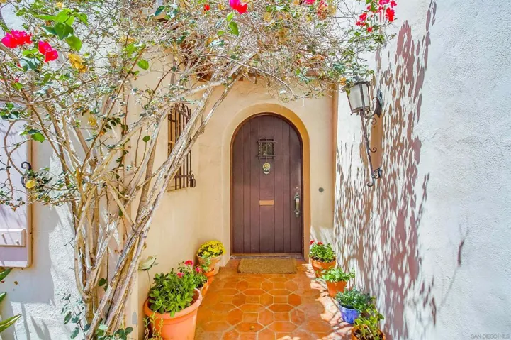 Step into the timeless charm of 1929 with this classic Spanish Colonial Revival residence, nestled in a secluded enclave of Bankers Hill. Brimming with character, the home showcases authentic stucco exteriors, red clay tile roof, original wrought iron details, and gracefully arched windows and doors. Inside, you’ll find exposed, hand-painted wood beams, artisan tilework, and historic elements that reflect the home’s architectural heritage. The floor plan features generously sized rooms, private balconies, and partial bay views that bring in natural light and coastal breezes. The terraced backyard is shaded by a canopy of mature, fruit-bearing trees, including two varieties of avocado, an assortment of citrus, plum, fig, and more.