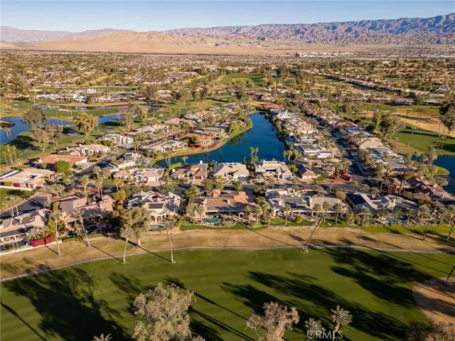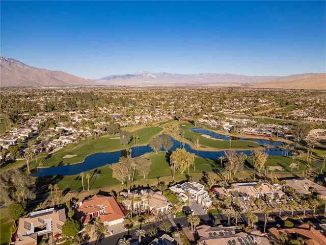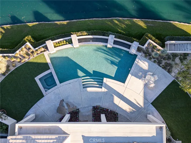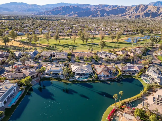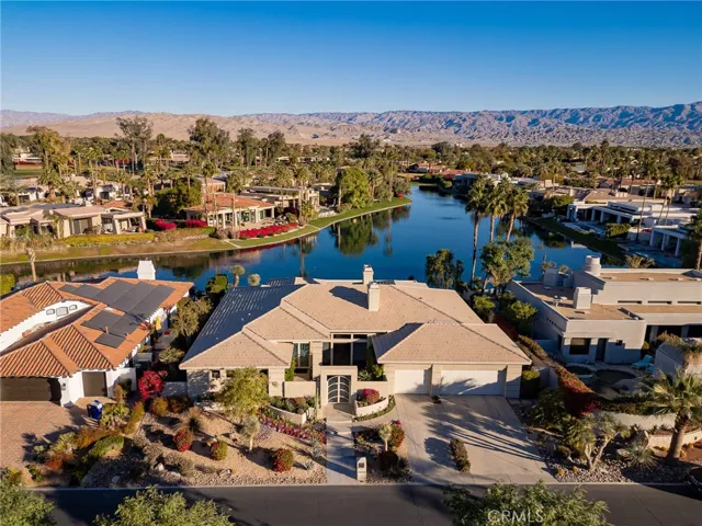 Custom Contemporary with a Rare Lakeside Setting in Rancho Mirage, offering Expansive Lake and Mountain Views and Grand Indoor and Outdoor Entertaining Spaces across 3,432 Square Feet on .35 Acres. Great Room with Soaring Ceilings, Walls of Glass, a Floor-to-Ceiling Fireplace, and a Casual Dining Area, all with views of the lake. Gourmet Kitchen with Top-Tier Appliances and a Social Island offering Counter Seating, open to an adjacent Media Room. The Kitchen and Media Room open to the Lakeside Terrace, allowing seamless indoor/outdoor living. The Primary Suite includes a Large Bedroom with high ceilings and walls of glass, a Retreat Area, and a Spa Bath with Double Vanities, a Soaking Tub, and generous Walk-In Closets. Two Guest Bedrooms each feature an Ensuite Bath and a Private Patio.