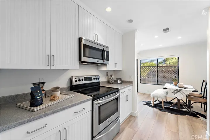 Beautifully renovated 3-bedroom, 2-bath end-unit condo in the heart of Laguna Niguel. This light-filled home features a spacious wrap-around patio that extends to the rear of the property—perfect for outdoor dining, entertaining, or relaxing. The upgraded kitchen offers tall white cabinetry, stainless steel appliances, and new countertops, with a conveniently located enclosed laundry room and built-in storage just off the kitchen. Both bathrooms have been tastefully updated, including a jetted tub, and all three bedrooms are generously sized with vaulted ceilings that enhance the open, airy feel. Additional highlights include new flooring and fresh paint throughout, creating a modern and inviting atmosphere. Parking includes a one-car garage plus an additional assigned space directly next to it.