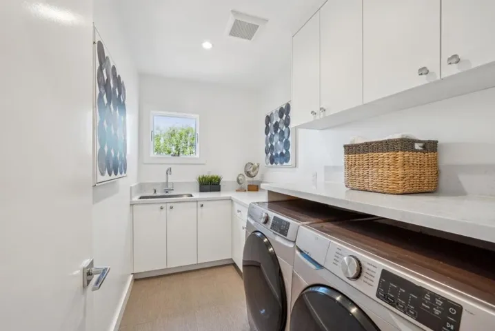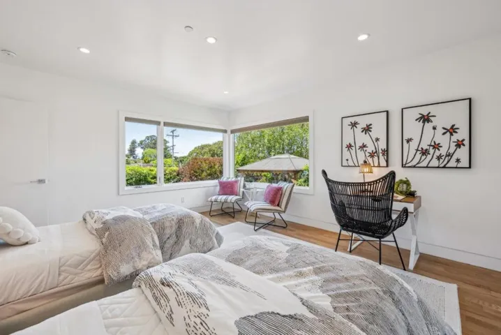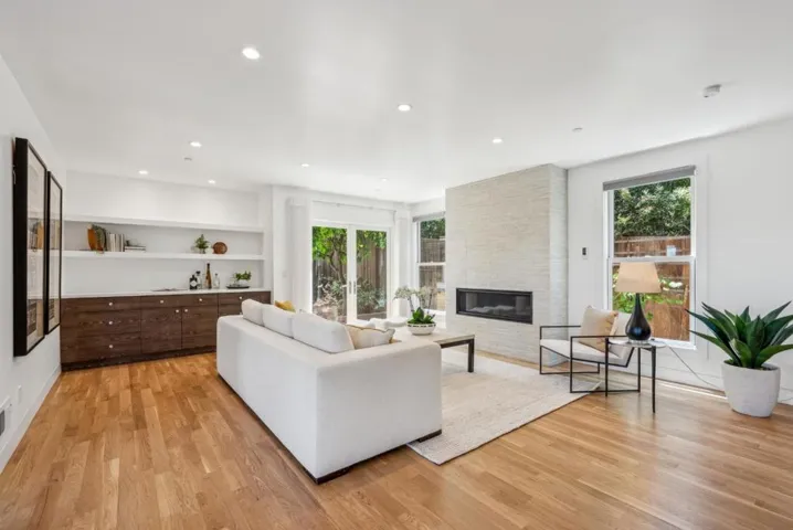 Rebuilt in 2019, this modern Millbrae home blends clean contemporary lines with calm, livable elegance, all set against sweeping Bay views that carry through the entire residence. Over 3,200 square feet of sun-filled space features wide-plank hardwood floors, soaring ceilings, crisp wall finishes, and expansive window walls that frame both greenery and the Bay beyond. The main level flows into a thoughtfully designed kitchen appointed with Thermador appliances, a spacious center island, and subtle geometric details that add a refined modern touch. Outdoor living is a defining highlight, with full-length view decks, a Zen-style patio, and a thoughtfully designed yard offering multiple places to relax, gather, or entertain. The primary suite provides a retreat-like experience with a soaking tub and dual showers, while five bedrooms plus a dedicated office offer flexibility for work, guests, or multi-generational living. Smart-home features, a three-car garage, and close proximity to top Millbrae schools and SFO further enhance comfort and convenience. A home where modern design, indooroutdoor living, and far-reaching Bay vistas come together with exceptional balance.
