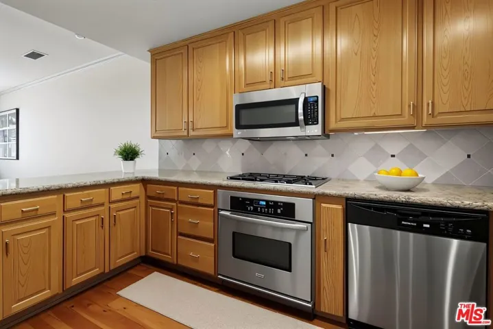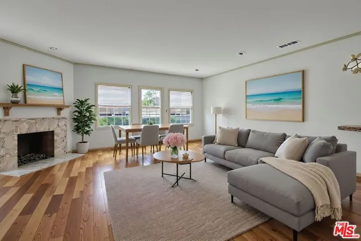One or more photo(s) has been virtually staged. INVESTOR OR OWNER-USER OPPORTUNITY: Welcome to this 2-bedroom, 3-bathroom townhouse in a charming 5-unit Spanish-style building on a quiet, tree-lined street in the prestigious college streets of Santa Monica. Currently leased through November 2026 at $3,850/month, this property offers immediate rental income for investors or a future primary residence for buyers planning ahead. Ideally located blocks from top-rated schools and all the boutique shopping, cafes and restaurants that Montana Ave has to offer, not to mention, just a short drive to the beach! This end unit features a desirable layout with hardwood floors throughout. The kitchen opens to a combined dining and living area that flows to a private patio. As an end unit, the property backs directly onto a communal yard, perfect for pet owners seeking outdoor space. The main level includes a powder room and direct access to an enclosed two-car garage with ample storage and secure, gated entry exclusive to residents. Upstairs, the primary suite offers soaring ceilings and an en-suite bathroom with dual vanities, tile finishes, a spacious shower, and a soaking tub. The second bedroom includes its own en-suite bath. An upstairs laundry area adds convenience. Located North of Wilshire in the highly sought-after Franklin Elementary School boundary, just a stroll to Douglas Park, Montana Avenue, and the Brentwood Country Mart. This end-unit townhouse presents a rare opportunity in one of Santa Monica’s most desirable neighborhoods whether as an income-producing investment or future dream home. Tenant-occupied with lease through November 2026. Showings available with 24-hour notice.