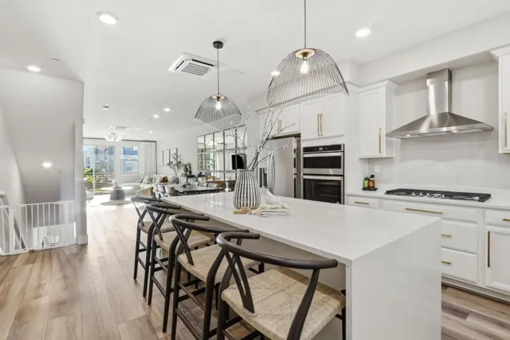 Discover modern living in this light-filled, energy-efficient home 2-bedroom, 2.5-bathroom townhome with stunning views of the foothills. This home is located in a beautifully maintained San Jose community offering dog parks, basketball courts, green spaces, walking trails, and a community garden. With an open floorplan, high ceilings, modern lighting, and a bright, airy feel throughout, this move-in-ready home blends comfort and style seamlessly. The updated, chefs kitchen impresses with a large waterfall-edge island, stainless steel appliances, and a gas range; perfect for everyday cooking or entertaining. Both spacious bedrooms offer private en suite bathrooms with dual sinks, glass shower enclosures, and sleek quartz countertops. Enjoy indoor-outdoor living with your own private patio and the convenience of an attached garage with extra storage plus the eco friendly, owned solar panels. Within easy reach of major Silicon Valley employers like Western Digital, this home also offers quick access to Safeway, Target, dining, Costco, and HWY 101 & 85. Modern convenience, thoughtful design, and an unbeatable location. This townhome has it all.