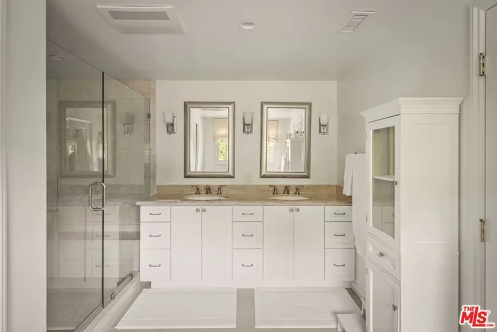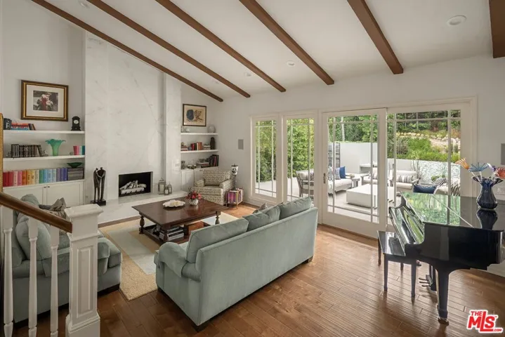Set in an idyllic Brentwood neighborhood, this pristine traditional-style residence blends classic refinement with modern comfort. Awash with natural light, the home welcomes with soaring vaulted and beamed ceilings, warm wood floors, and an inviting sense of space and serenity. Enter through the foyer and enjoy an open sightline through the home to the beautifully landscaped backyard. The formal living room, anchored by a stone fireplace and custom built-ins, opens through sliding glass doors to the firepit patio for effortless indoor-outdoor living. The remodeled chef’s kitchen features premium Thermador appliances, ample pantry storage, and a convenient passthrough window to the backyard entertaining area. A formal dining room sits adjacent to the kitchen, ideal for hosting intimate dinners or larger gatherings. Designed for relaxation and connection, the expansive family room boasts a built-in wet bar with temperature-controlled wine storage. The thoughtful floor plan offers one bedroom on the main level — ideal for a home office or guest suite — and four additional bedrooms upstairs. Retreat to the primary suite, a private sanctuary with a spacious walk-in closet and a luxurious en suite bath with dual vanities, a glass-enclosed shower with bench seating, and a sunlit soaking tub. Additional amenities include Control4 home automation, surround sound, a gym, a powder room, and a two-car garage with direct home access. Outdoors, enjoy manicured landscaping and tall privacy hedging framing an entertainer’s paradise — complete with a sparkling pool with an automatic cover, built-in outdoor kitchen, cozy firepit, children’s playhouse, and both covered and uncovered patio spaces for year-round enjoyment. Located just moments from Brentwood Village’s charming boutiques, restaurants, and amenities, this home offers the best of Westside living in a premier Brentwood enclave.
