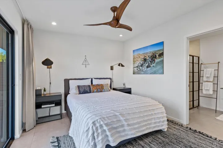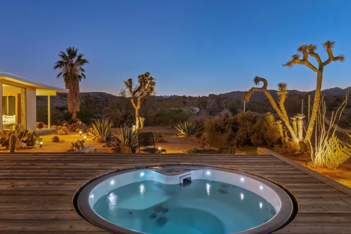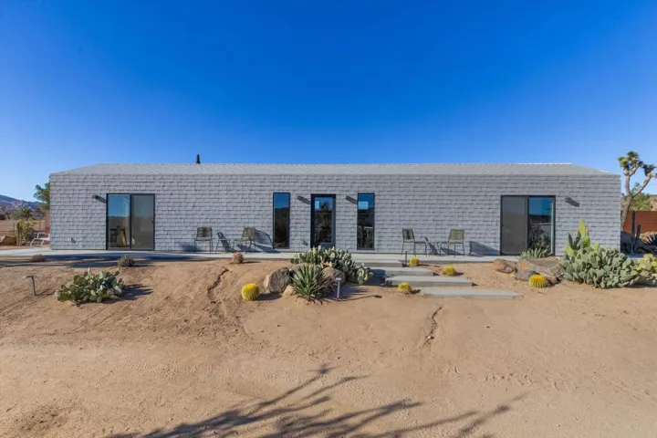 A contemporary Pipes Canyon compound by Wolfgang Pichler where architecture, landscape and light come together. Set on a private rise with long, open views, the property looks out toward the Sawtooth Mountains, distant boulder fields and wide mesa lines. The setting feels quiet and expansive, with intentional desert landscaping, specimen trees and mature plantings that frame the homes and create a sense of privacy. The main house, renovated in 2019, is designed for true indoor-outdoor living, with floor-to-ceiling glass, a clean open layout and a modern kitchen anchored by a large island. The primary suite continues the indoor-outdoor flow with a spa-like bath that includes a soaking tub, a walk-in shower and access to a private outdoor area with an outdoor shower. The second bedroom features its own en-suite bath and a private outdoor connection. The ADU, built in 2022, follows the same architectural language, offering large picture windows, beautiful natural light and far-reaching views. It includes two bedrooms with en-suite baths, a well-designed kitchen and a comfortable living area. Outdoor spaces are designed for easy gathering and relaxation, with an elevated deck, cowboy pool, spa, two outdoor soaking tubs, a fire feature, an open-air dining area and a collection of thoughtfully placed seating areas throughout the property, each oriented toward different views and moments in the landscape. With privacy, striking landscapes and thoughtful architecture, this property works as a full-time home, private retreat or high-performing short-term rental. It already enjoys strong rental income with significant opportunity to grow even further. Minutes to Pioneertown, Pappy and Harriets and Red Dog Saloon, and close to the trails of the Pioneertown Mountains Preserve and the Sand to Snow National Monument. Also an easy drive to La Copine, The Integratron, downtown Joshua Tree and Joshua Tree National Park, all while feeling quiet, private and immersed in one of the most sought after pockets of Pipes Canyon.