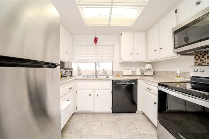 Fantastic! Welcome to this beautiful home at the La Mirada Landmark 55+ Community! This a top floor unit that is also a corner with only one shared wall. Large balcony with enclosed utility room for laundry with washer and dryer coming with the property. Sweeping views of greenbelt, trees, mountains and more in most of the rooms in the home. High ceilings with laminate floorings, skylights, and large sliding glass doors let in a ton of natural light. Kitchen has all electric appliances, white cabinets with granite countertops. Large master suite with huge walk-in closet. Open floor plan with large dining room that opens onto living room. Detached one-car garage with remote control. Complex has 24 hour security guard gate, swimming pool, spa, recreation room with large kitchen, tennis courts, ping pong and picnic area and more! Located within walking distance to La Mirada golf course, and the La Mirada center for performing arts. Much more. A must-see!