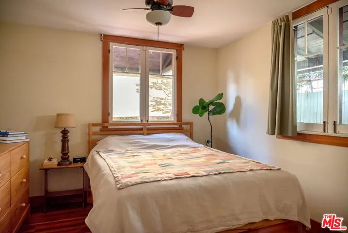 Nestled at the end of a quiet cul-de-sac in Pasadena’s coveted Historic Highlands, this timeless craftsman bungalow blends classic character with refined modern living. The home features two bedrooms on the main level and an enchanting upstairs “tree-house” bonus room perfect for an office or reading nook. Original hardwood floors, custom built-ins, and sun-drenched interiors create a warm elegance, anchored by a stone-tiled fireplace. The bathroom features dual vanities, built-ins, and an iconic claw-foot tub. French doors open to the outdoor dining terrace, the garden, garage, and a detached studio/creative space. This Pasadena gem oers a rare combination: serenity, history, and craftsmanship; the best of life in LA.