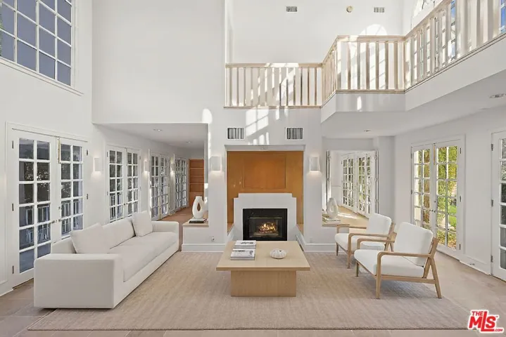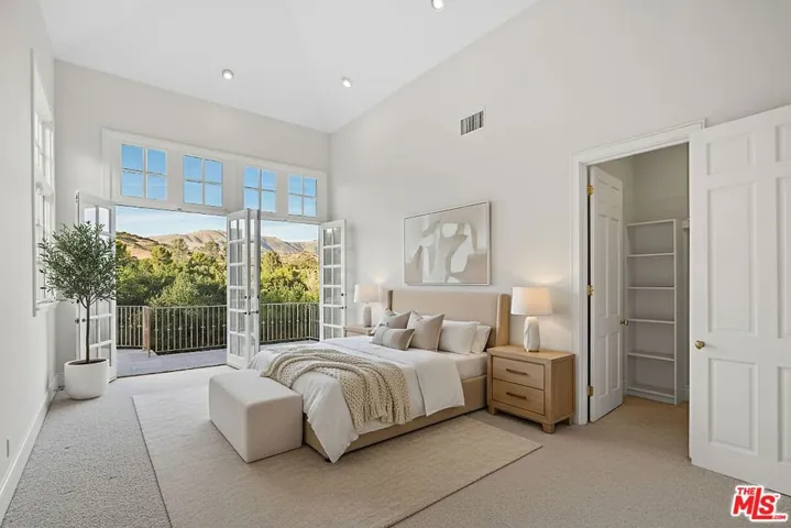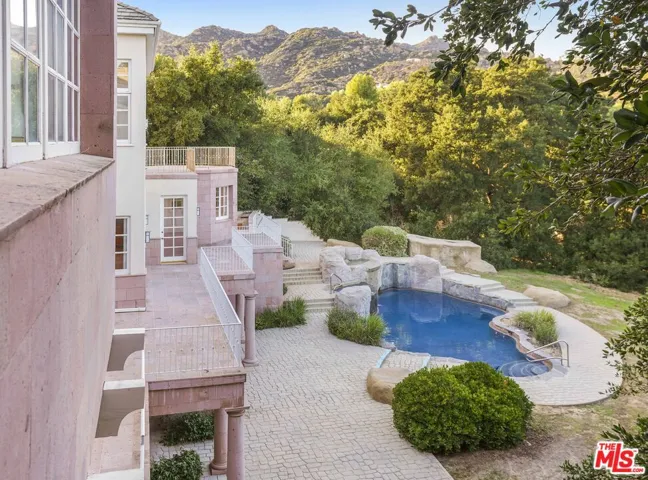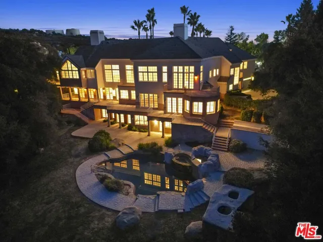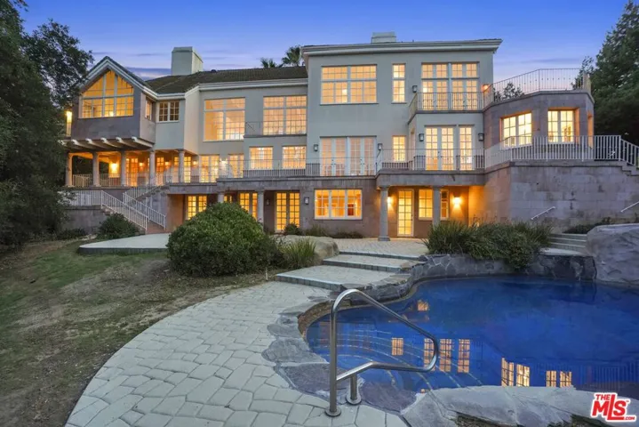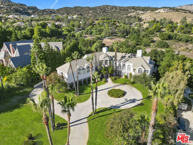 Presenting a home of notable distinction; an extraordinary post-modern architectural estate nestled within the exclusive, 24-hour guard-gated community of Indian Springs Estates. A rare sanctuary renowned for its commanding privacy and security, lifestyle of luxury and long-standing reputation as home to celebrities, sports figures, music moguls and high-profile professionals alike. Crowing a sprawling, over 2.6 acre lot the home is a destination, located behind the coveted 2nd gate and residing in divine harmony with its organic environment of mature trees, verdant greenery and spectacular Santa Susana Mountain backdrop. A sweeping circular driveway and expansive motor court set the tone for the home’s impressive scale, leading to dramatic architecture defined by its bold, clean lines. Inside, grand volumes of space and massive use of glass and Neo-Palladian windows flood the interiors with natural light. Wood beamed ceilings soar above rich stone flooring with an open floor plan that provides gracious transition from room to room, optimally designed for easy, relaxed living and entertaining on a grand scale. Boundless views of the rolling hills and mountain range beyond are showcased through expansive view decks. A continuum of French paned doors bring the outdoors in and give way to a resort style setting with sparkling pool, spa and waterfall that embody the coveted Southern California lifestyle of endless al fresco leisure. Set against lush, mature landscaping enhancing the privacy of the grounds, a tranquil solitude abounds, elevating the living experience to new heights. An array of amenities include multi-use flex space bonus rooms including upper and lower level family and rec rooms with wet bars, walk-in closets, sauna, wine cellar, lux primary suite with private view deck and loft space and 4-car garage. Located in the Chatsworth Park Elementary Magnet school district and minutes from the premier entertainment, shopping and dining destination of The Vineyards, here is a rare and valued opportunity with unlimited potential to place your own design mark and create an iconic dream estate in one of the Valley’s most prestigious communities. Welcome!