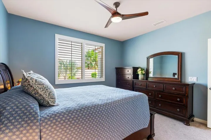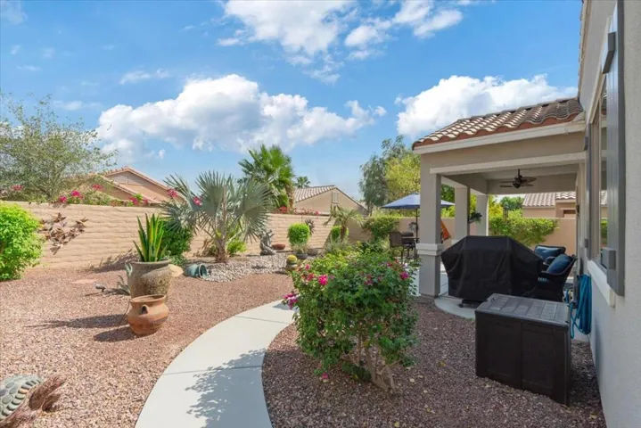Welcome to this immaculate and charming turn-key furnished Granada Plan, offering 1,099 sq ft of thoughtfully designed and decorated living space inside of the gates of Sun City Shadow Hills, a 55+ active community. Every detail reflects quality and care, from the freshly painted exterior and interior, custom window coverings and tasteful furnishings and artwork. This home creates a welcoming atmosphere that you’ll love coming home to. The harmonious blend of style and comfort makes it an retreat for relaxation and entertaining alike. Experience the perfect balance of elegance and functionality in every corner with a seamless flow between the open living space and the kitchen and dining area. The primary suite provides comfort with dual vanities and a spacious walk-in closet. The additional bed room and guest bath will have your guests feeling welcome and relaxed. The private backyard oasis invites you amidst lush landscaping complete with gas grill, dining and sitting areas and a fire table for the cool winter evenings. The home is adequately stocked with all the kitchen tools and utensils a home cook may need. Tenants get to enjoy access to two clubhouses, fitness center, indoor & outdoor swimming pools, tennis & pickleball, bocce ball, shuffleboard, dog parks and much more! Golf is available at tenants expense (pay to play). Close to shopping, dining, Acrisure arena & I-10 freeway. Available seasonally OR long-term. $3900/month Oct-April; $3650 May-Sept; or Long-Term (one-year or longer) $2700/month.
