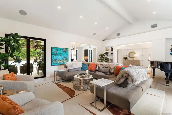 Tucked away at the end of a private cul-de-sac in the coveted Muirlands West neighborhood, this exceptional single-level La Jolla residence blends refined design with modern convenience on nearly half an acre of beautifully landscaped grounds. Every detail has been thoughtfully curated throughout this single level estate, offering a seamless balance of luxury, privacy, and functionality. Step inside to expansive open living spaces bathed in natural light through oversized La Cantina sliding doors, creating a fluid connection between indoors and out. The chef’s kitchen is a true centerpiece, featuring quartzite Cristallo counters, Wolf/Sub-Zero appliances, dual wine fridges, and custom cabinetry. Wide-plank hardwood floors, designer lighting, and sophisticated finishes enhance the home’s contemporary coastal aesthetic. The primary suite provides a serene retreat with an oversized walk-in closet, spa-inspired bathroom with steam shower, soaking tub, and custom stonework. Additional highlights include an executive office, dual laundry, and whole-home smart systems with security and electric shades. Resort-style living continues outdoors with a brand new 42-foot saltwater pool, built-in BBQ island with Neolith counters, fire pit, putting green, and outdoor shower—all framed by lush landscaping, new hardscape, and ambient lighting. Recent enhancements make this home even more remarkable: a custom solar system with a new 400 AMP electrical panel offers energy efficiency and ability to install a EV supercharger, while the garage has been reimagined into a state-of-the-art gym featuring drop-down TVs and built-in cabinetry for sleek storage. Perfectly private yet moments from La Jolla’s beaches, schools, and village amenities, this residence is a rare opportunity to experience modern luxury in one of San Diego’s most desirable enclaves.