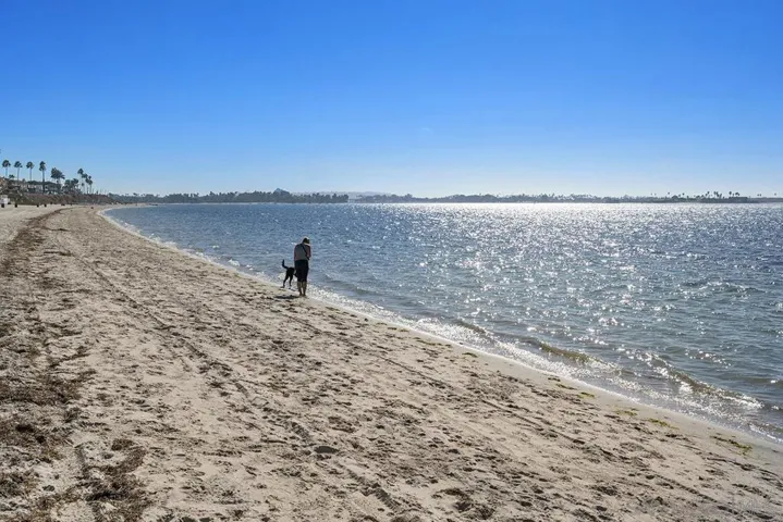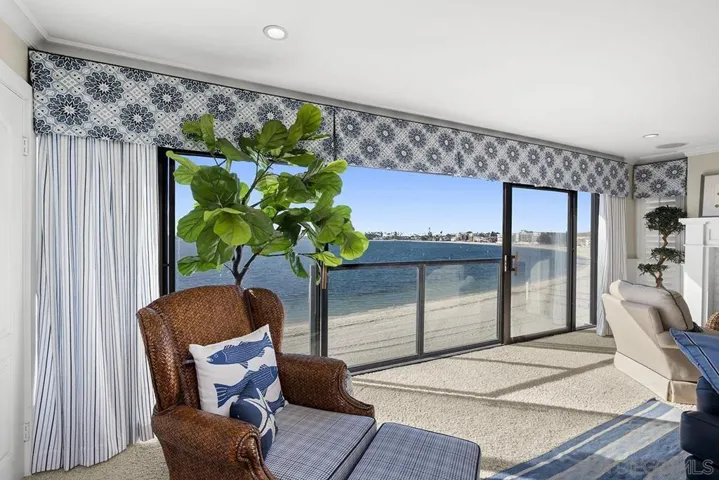Mission Bay Living at Its Best! This beautifully updated 2-bedroom, 2-bath, 2053sf home sits directly on Mission Bay and offers wide, unobstructed water views that become the highlight of the living space. The setting feels peaceful and private, with a front-row seat to sailboats, sunsets, and the calm shoreline. Inside, the home has a warm, open feel. The kitchen is a centerpiece with a Wolf gas range, quality appliances, and plenty of counter space for cooking or entertaining. Just beyond, the living room frames the bay through nearly 20 feet of windows that open to the coastal breeze. A custom built-in bar with a mini-fridge and refined touches like crown molding make the space ideal for gathering or relaxing. The primary suite is a generous retreat with a walk-in closet and a spacious bath featuring a soaking tub, separate shower, and dual vanities. The second bedroom is well-sized for guests, a home office, or family, paired with an upgraded full bath. If you’ve been looking for a coastal home that blends comfort, style, and a true connection to Mission Bay, this one delivers. Every day feels a little lighter when the water is this close.