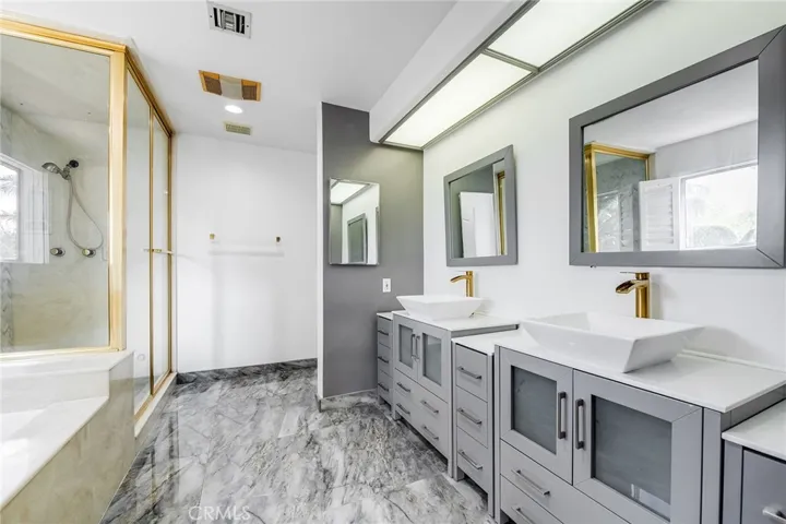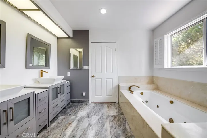 Yolie Lane is an exceptional blend of luxury, privacy, and modern comfort tucked away on a peaceful cul-de-sac. Behind an automatic security gate, this beautifully updated residence offers a quiet retreat while situated just moments from the vibrant shops and dining of Ventura Boulevard. Step inside to an airy open floor plan highlighted by soaring vaulted ceilings. At the heart of the home is a fully remodeled designer kitchen featuring striking quartzite countertops, a large center island, and a Frigidaire Professional 66-inch side-by-side refrigerator, along with a Wolf six-burner range and Bosch dishwasher. Adjacent is a stylish wet bar, ideal for hosting guests. Additional modern conveniences include central vacuum and remote-controlled blackout shades in the primary bedroom as well as along the front of the house. The home is also equipped with dual-zone AC for optimal comfort year-round. Step outside to the private and peaceful outdoor area featuring a pool, Jacuzzi, and a retractable awning for dining al fresco. Upstairs, the primary suite offers a walk-in steam shower, separate soaking tub, and dual sinks. The secondary upstairs bathroom also has dual sinks, ensuring comfort and convenience for family or guests. Yolie Lane is a property you won’t want to miss. Discover the lifestyle you’ve been dreaming of in this exquisite cul-de-sac home.