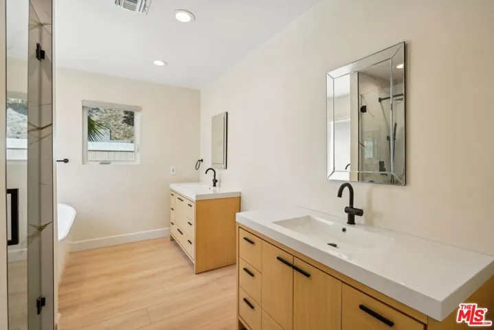 Nestled in the serene hills of Woodland Hills, this beautifully remodeled home offers an exquisite blend of modern comfort, breathtaking city views and natural beauty. With 3 spacious bedrooms and 2.5 bathrooms, this property is designed for both style and functionality. Step inside to a sunlit living room, where skylights fill the space with natural light, creating a warm and inviting ambiance. The thoughtfully designed floor plan includes a separate dining room and a cozy breakfast area, perfect for casual mornings. Work from home effortlessly in the dedicated office room, and enjoy the convenience of a family room that offers ample space for relaxation. A large storage closet room ensures all your belongings are neatly organized, while the laundry room, complete with a washer and dryer, adds to the home’s convenience. The property also features a large basement storage area in addition to the garage, providing an abundance of space for your storage needs. With its fresh, complete remodel, this home is move-in ready and waiting for its next resident to enjoy the perfect combination of comfort and sophistication.