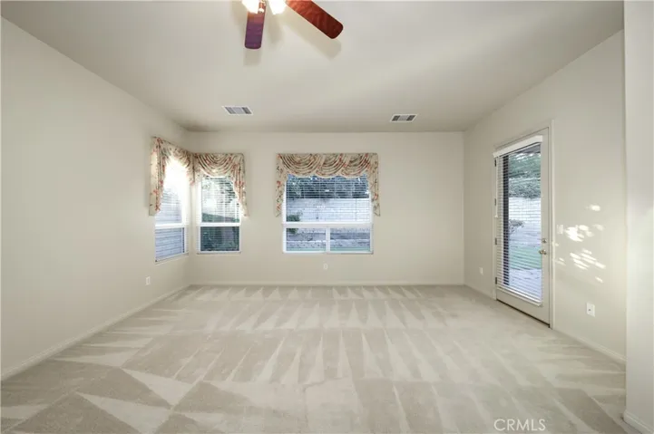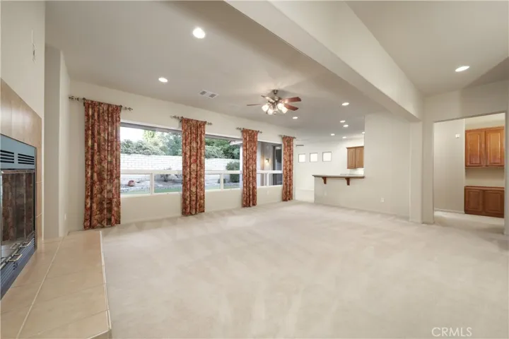 This impeccably maintained home in the desirable Seven Oaks Greens 55+ gated community is a true gem! Featuring a spacious split-wing layout with 2 bedrooms + office, 2 bathrooms, and a large family room with high ceilings, cozy fireplace, and surround sound, this home offers both comfort and functionality. Enjoy serene views of the picturesque backyard through oversized windows.