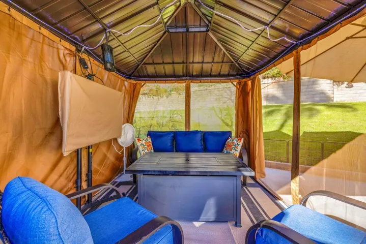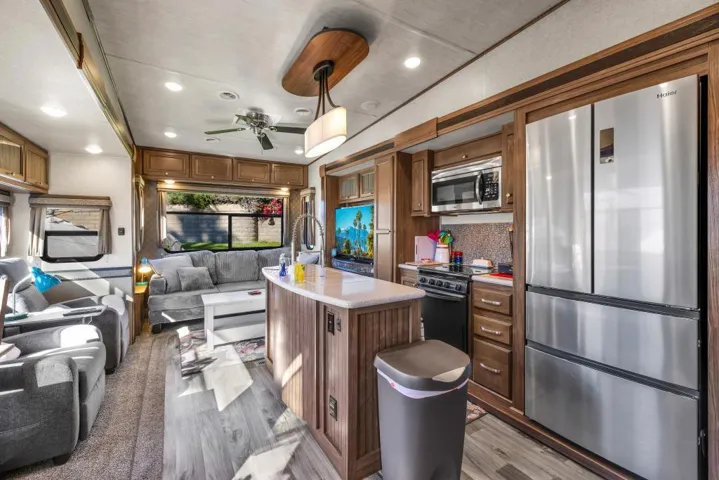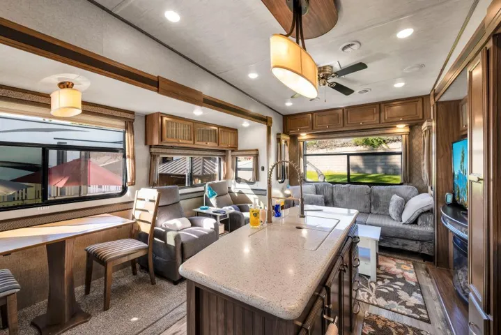Here’s an appealing opportunity. This super nice package includes a 2017 Heartland Elkridge bunkhouse, an exceptionally versatile unit perfectly configured to function either as comfortable guest accommodations or as a dedicated, private office space, offering considerable flexibility to suit various needs.The accompanying lot has been meticulously enhanced, featuring the installation of premium artificial turf for year-round aesthetic appeal and minimal maintenance. Additionally, a new gazebo has been incorporated, establishing a charming focal point within the outdoor area. These thoughtful upgrades collectively create an exceptionally inviting and highly functional exterior environment, ideal for both personal enjoyment and entertaining.Adding to the property’s allure is the generously sized greenbelt situated immediately behind the lot. This natural expanse not only provides a picturesque and serene backdrop but also offers an enhanced sense of privacy and openness. This combination of an upgraded outdoor living space and direct access to a natural greenbelt makes this location particularly well-suited and accommodating for pet owners.