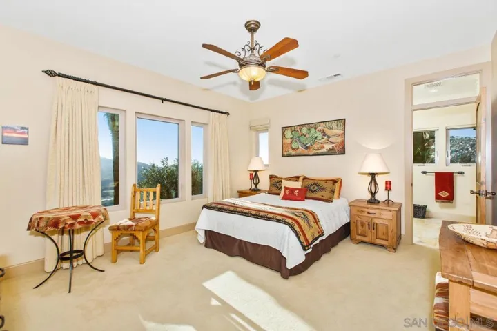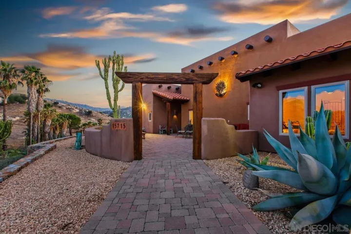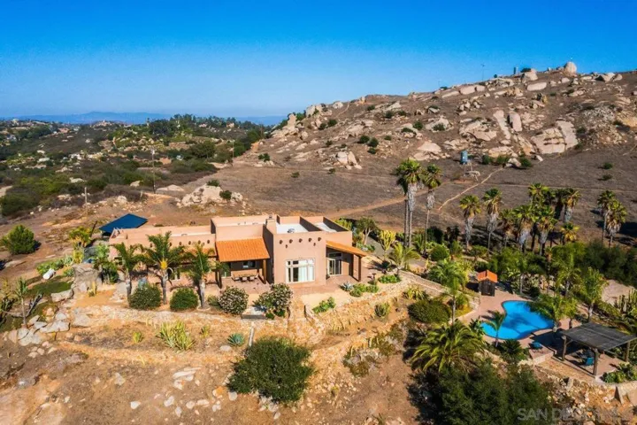 Experience the Stunning Santa Fe Estate Perched High On 8.49 Acres In A Gated Community on the West End Of Ramona’s Wine Country. Spectacular 360 Degree Views. An Amazing Pool With Pergola And Sitting Area For Absorbing The Breath Taking Views Below. Enjoy Your Favorite Beverage While Watching The Endless Sunsets From One Of The Many Patios. Split Floor Plan, Soaring Ceilings, Massive Wood Beams. Open Chef’s Kitchen, Double Ovens, 6 Burner Gas Cooktop, Granite Countertops and Custom Cabinets. Nestled within a gated community on Ramona’s West End, this stunning Santa Fe Estate spans 8.49 acres and offers breathtaking 360-degree views. Ideal for relaxation, the property features an amazing pool complete with a pergola and sitting area’s, perfect for enjoying the panoramic vistas and mesmerizing sunsets. Inside, the home showcases a split floor plan adorned with soaring ceilings and massive wooden beams. The open chef’s kitchen is a culinary delight, featuring double ovens, a 6-burner gas cooktop, granite countertops, and custom knotty alder cabinets. The residence includes three bedrooms, a spacious master suite, and a guest suite with a kitchenette and full bath. Designed for seamless indoor and outdoor living, every room offers stunning views of the surrounding landscape.